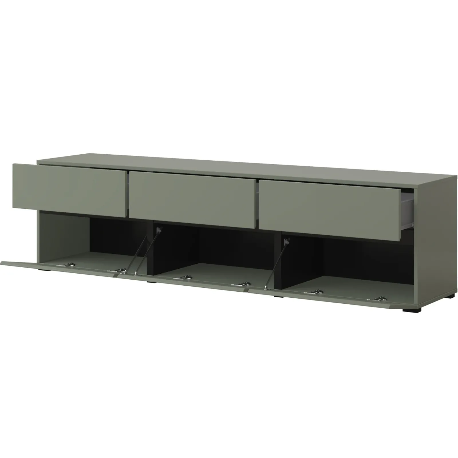 Garnero Arredamenti Mobile Tv Basso|Mobili Tv Moderni-Mobile porta TV 180x48h cm 3 ante a ribalta 3 cassetti verde nero Lolla Verde Salvia