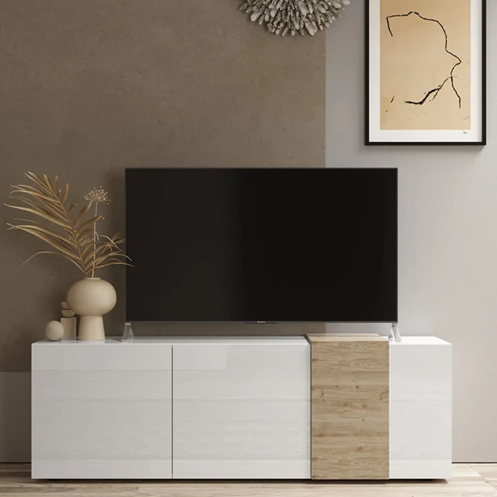 Mobile porta tv 3 ante 181x59cm bianco lucido rovere Universal: possibilità perfetta per collocare la propria tv in modo ricercato.
