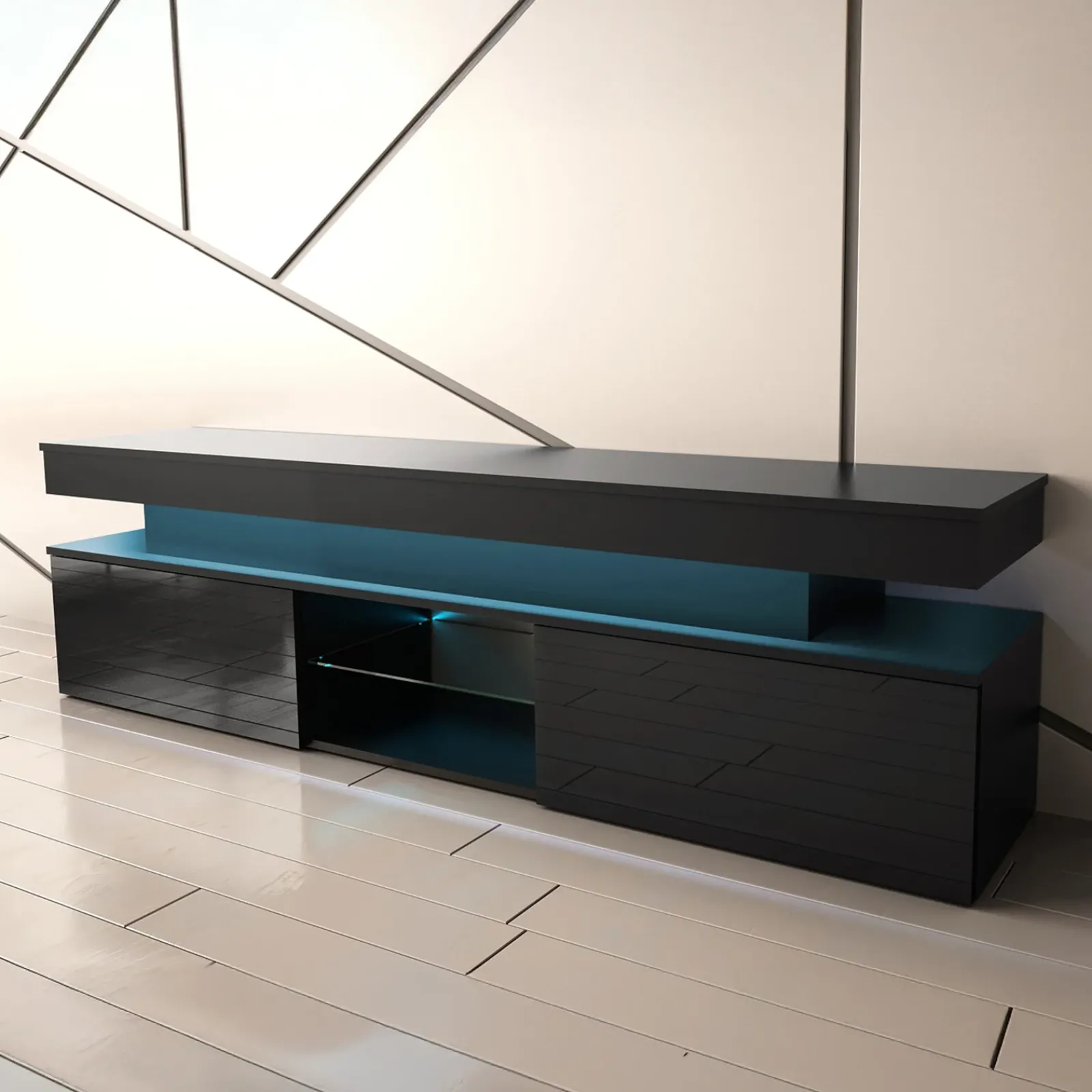 Stai cercando un mobile porta TV che rifletta il tuo amore per lo stile minimalista, senza compromettere lo spazio e la funzionalità? Il Mobile porta TV Lumus è proprio quello che fa per te! Con la sua elegante finitura nero lucido, l’assenza di maniglie e una struttura compatta, questo mobile incarna alla perfezione il design minimalista che stavi cercando. Le due ante a ribalta, dotate del pratico sistema push to open, svelano due ampi vani interni dove potrai riporre in modo ordinato giochi da tavolo, videogiochi e tutto ciò che di solito ingombra il salotto. Mai più caos! Ma non è tutto: i due vani a giorno, separati da un raffinato ripiano in vetro temperato, sono perfetti per posizionare la tua console da gioco, il decoder o i telecomandi, tenendo tutto a portata di mano e sempre in ordine. La sua superficie superiore è ideale per il televisore, ma anche per accessori decorativi come vasi o cornici. A completare il look, il Mobile porta TV Lumus è dotato di un LED integrato a luce blu, che aggiunge un tocco di fascino e modernità al tuo soggiorno, creando un’atmosfera unica e avvolgente, perfetta per le tue serate di relax. Con il Mobile porta TV Lumus, ogni cosa troverà finalmente il suo posto, e il tuo soggiorno risplenderà di eleganza e funzionalità!