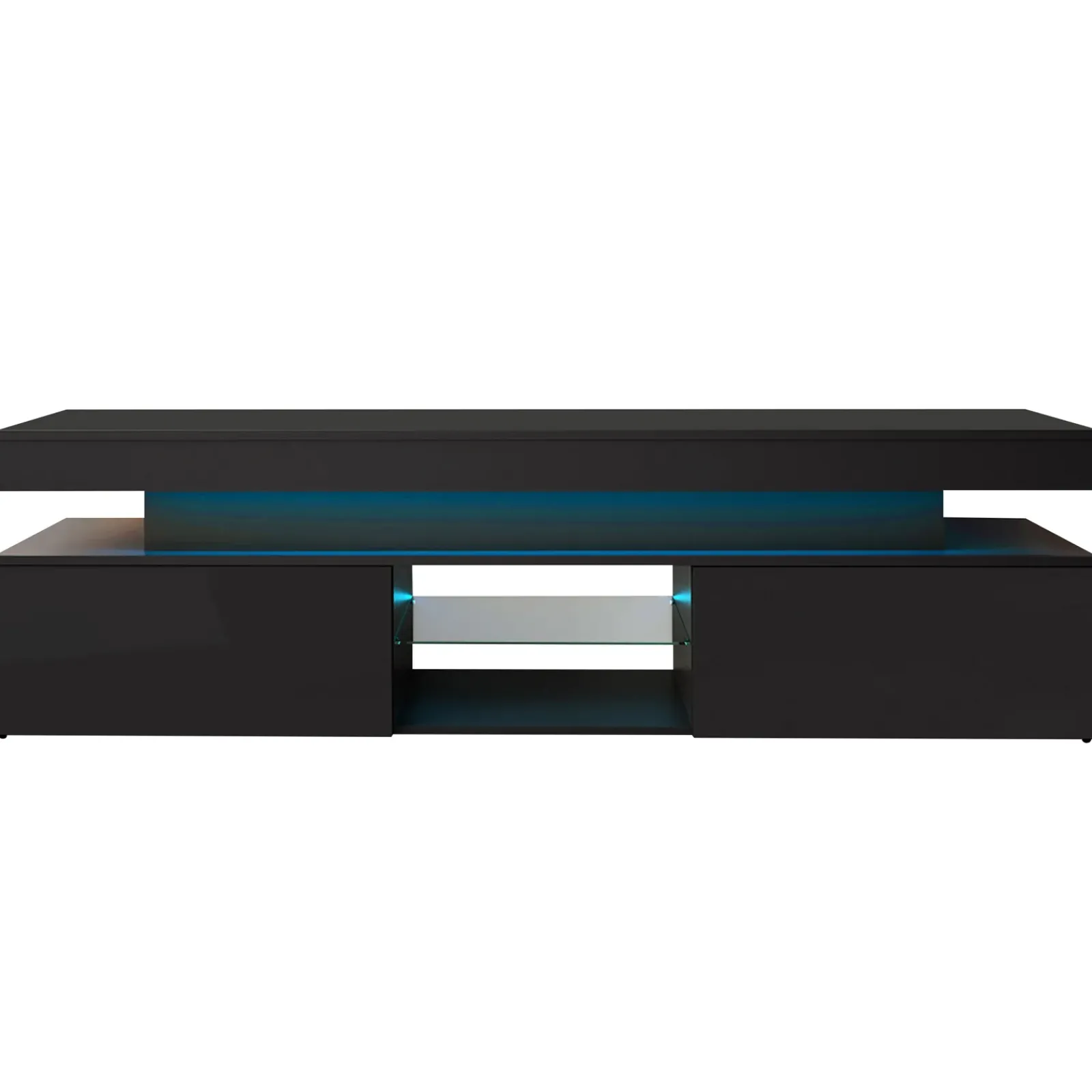 Garnero Arredamenti Mobile Tv Basso|Mobili Tv Moderni-Mobile porta TV 190x54h cm 2 ante con LED nero Lumus Nero Lucido