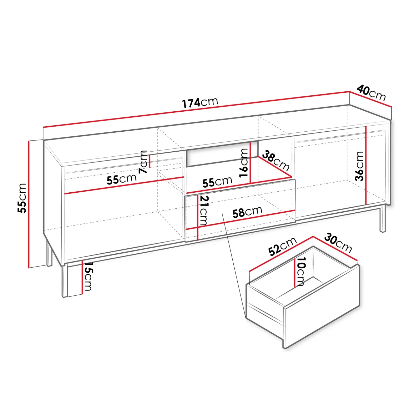 | Dimensioni | L.174 x H.55 x P.40 cm |