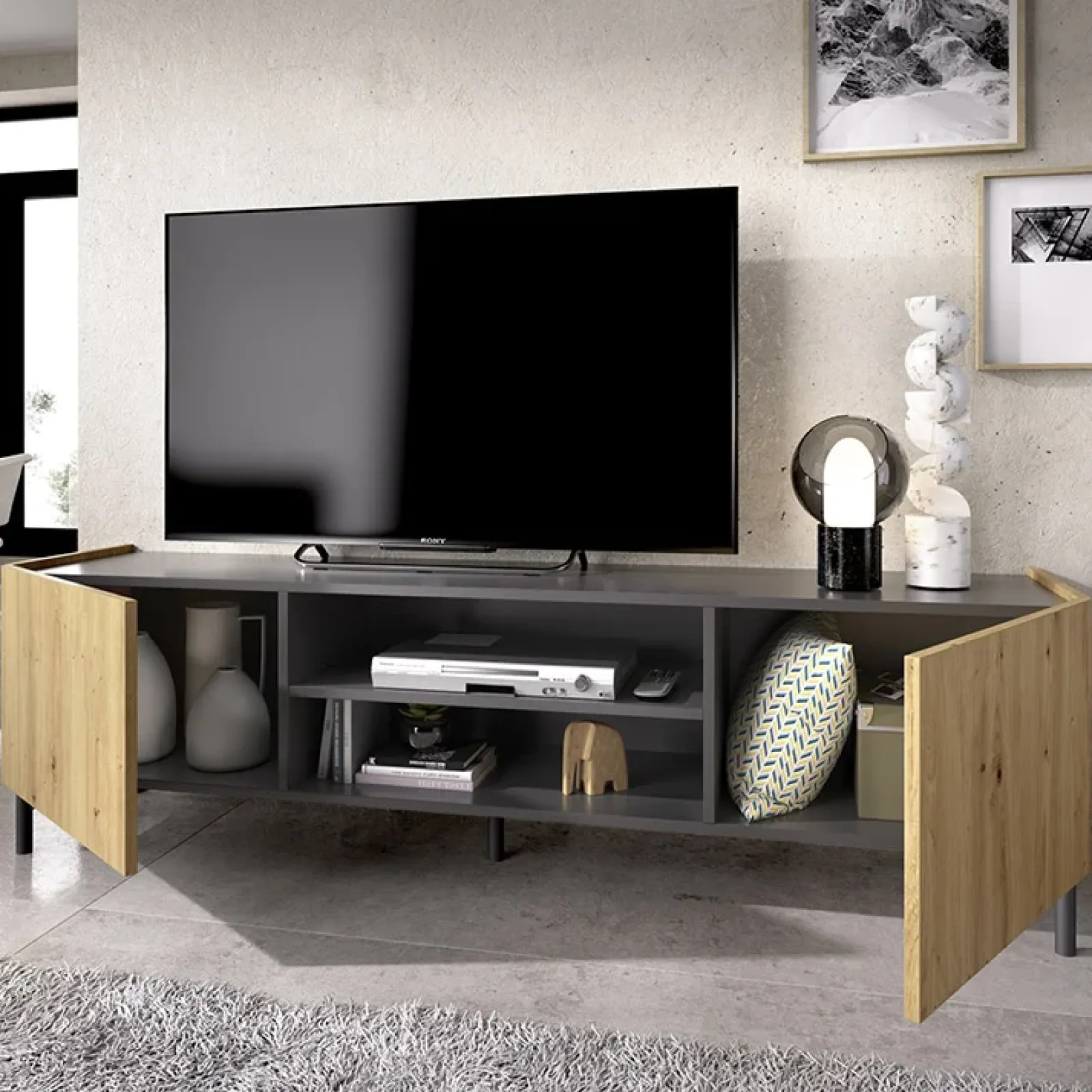 Mobile porta TV 161cm legno rovere grafite Mino, prodotto elegante e funzionale per godersi i propri momenti di relax, davanti alla TV, a pieno