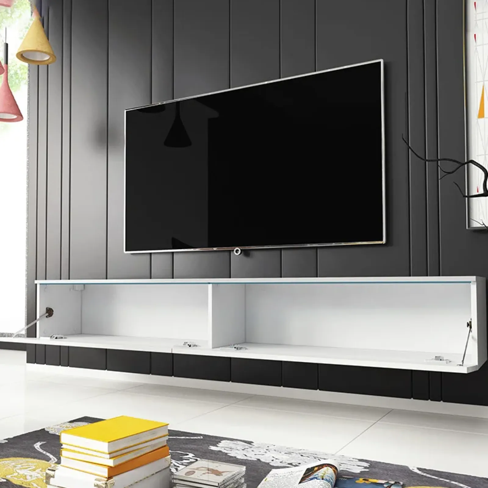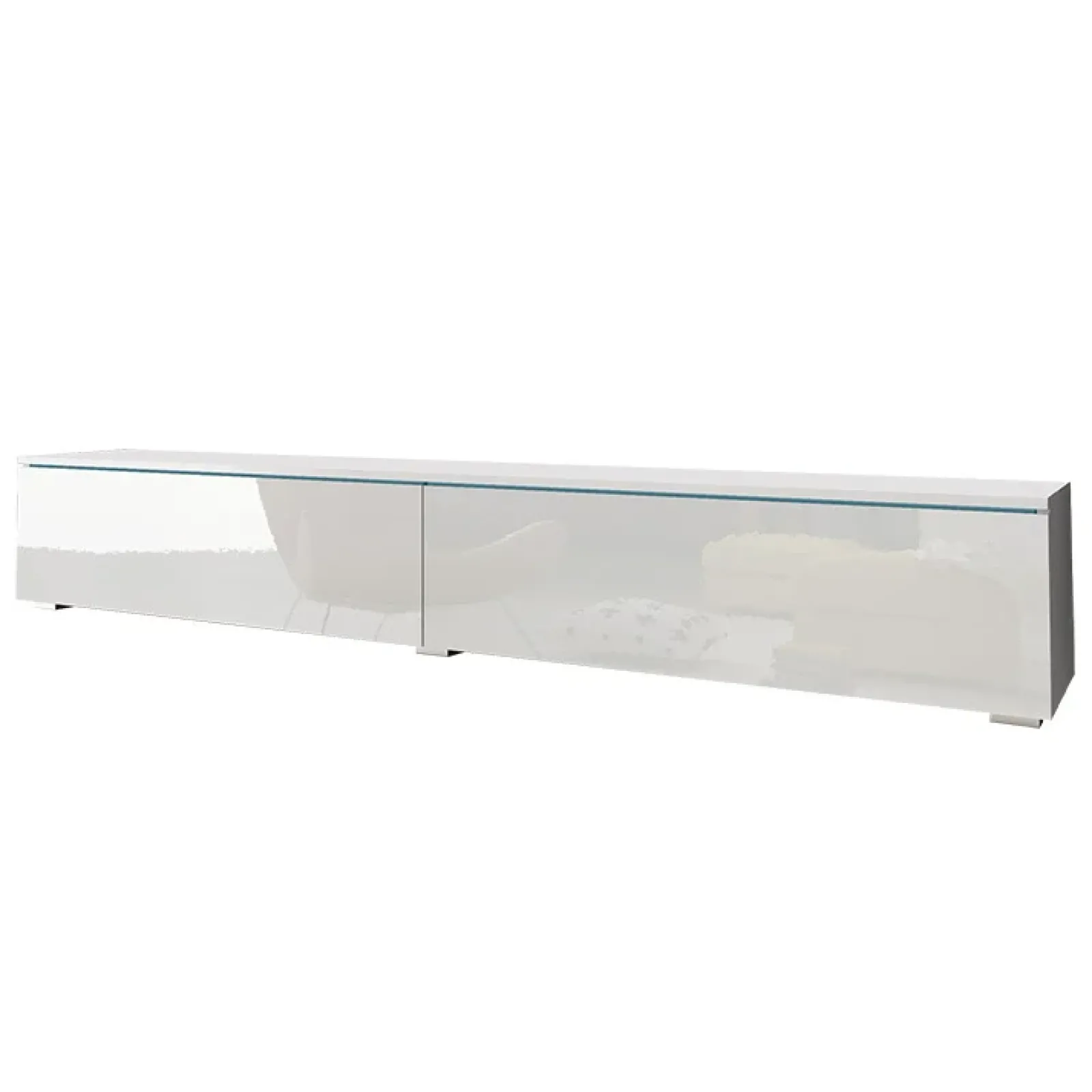 Garnero Arredamenti Mobile Tv Sospeso|Mobili Tv Moderni-Mobile porta TV sospeso 180x30h cm design 2 ante Silvia Bianco Lucido