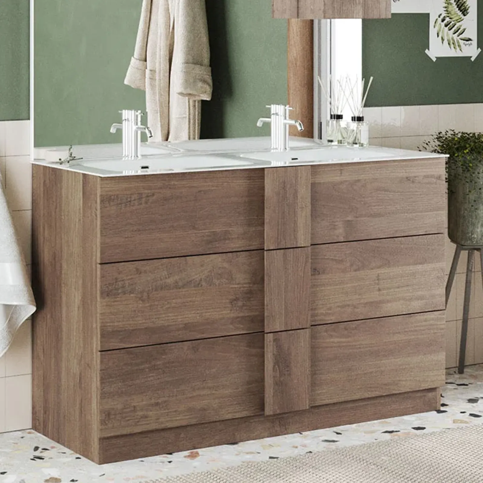 Garnero Arredamenti Mobili Bagno A Terra-Mobile bagno a terra 120cm con doppio lavabo 3 cassetti rovere Alvarez