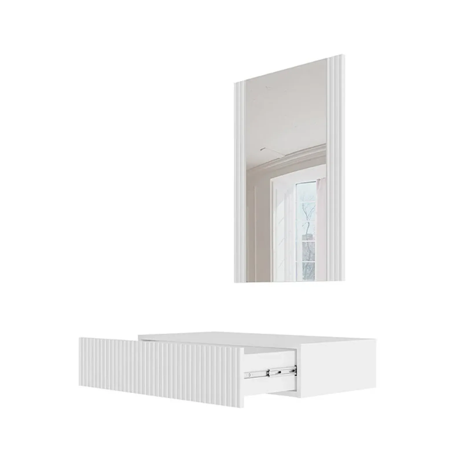 Garnero Arredamenti Mobili Ingresso Sospesi|Mobili Ingresso-Mobile ingresso sospeso 80×97 h cm con specchio cannettato bianco Essence Bianco Opaco