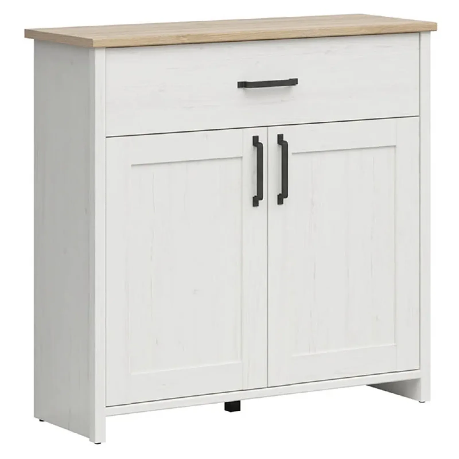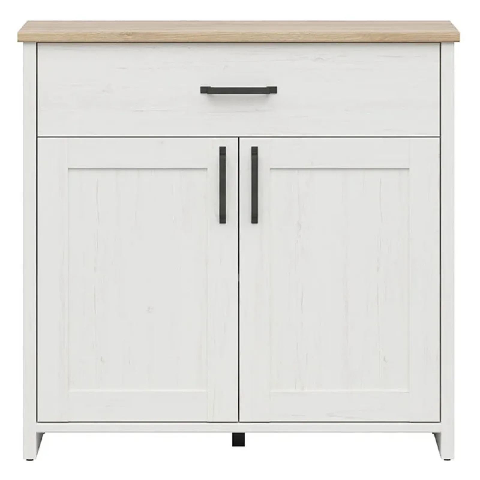 Garnero Arredamenti Mobili Multiuso|Credenze Moderne-Mobile multiuso 102x99h cm 2 ante 1 cassetto scandinava bianco frassinato rovere Lars