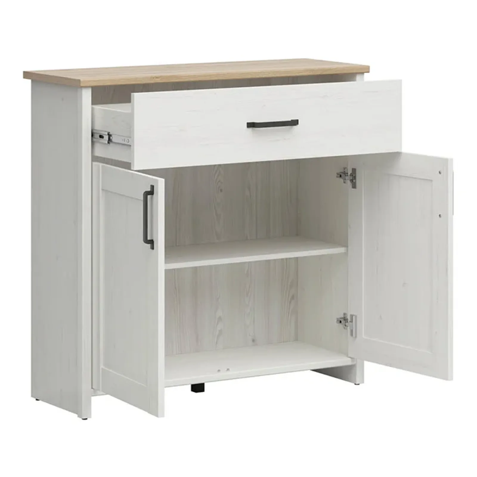 Madia 102x99cm scandinava 2 ante 1 cassetto bianco frassinato rovere Lars