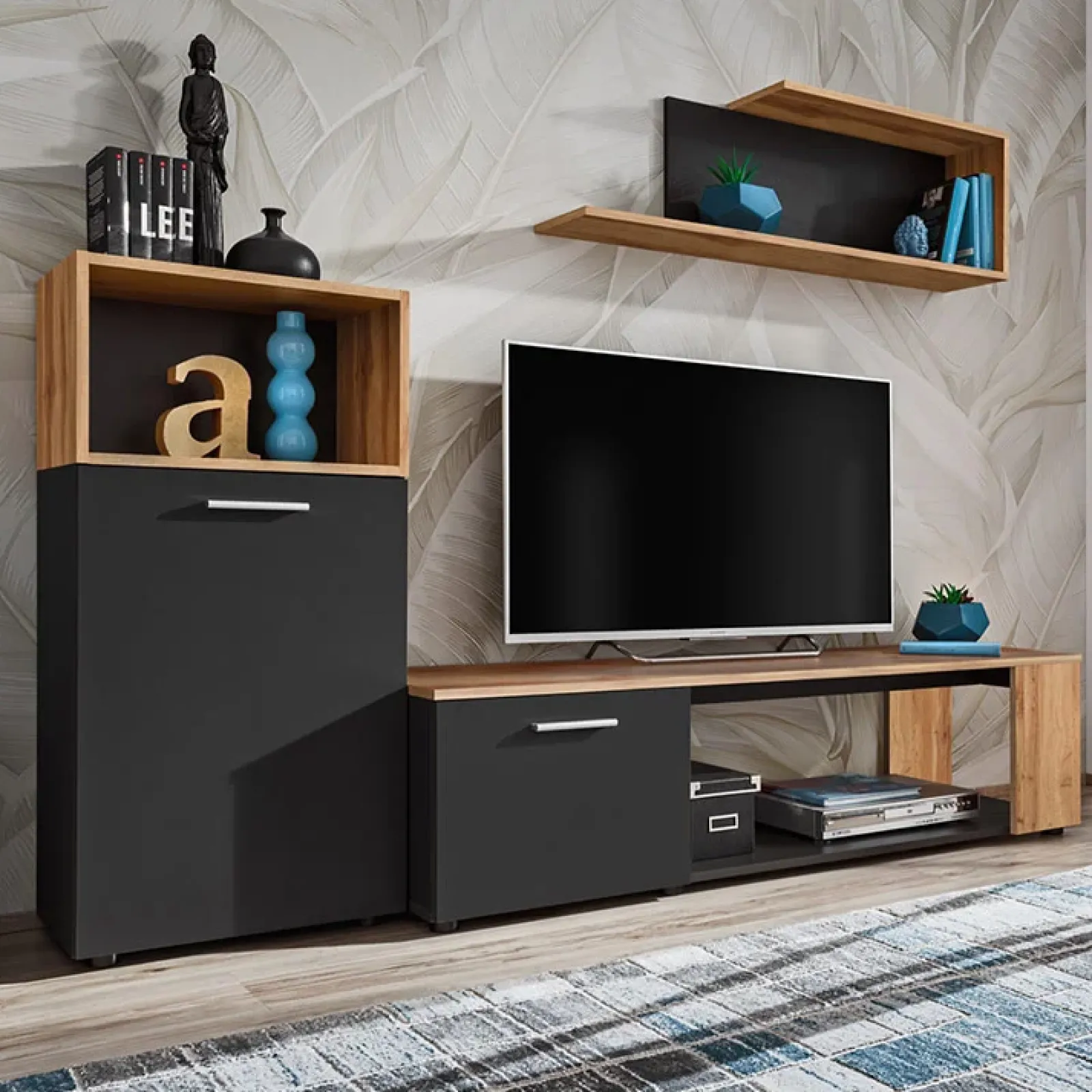 Garnero Arredamenti Parete Attrezzata A Terra|Pareti Attrezzate-Parete attrezzata 200x160h cm moderna nero opaco rovere Caravaggio Nero Opaco – Rovere Rustico