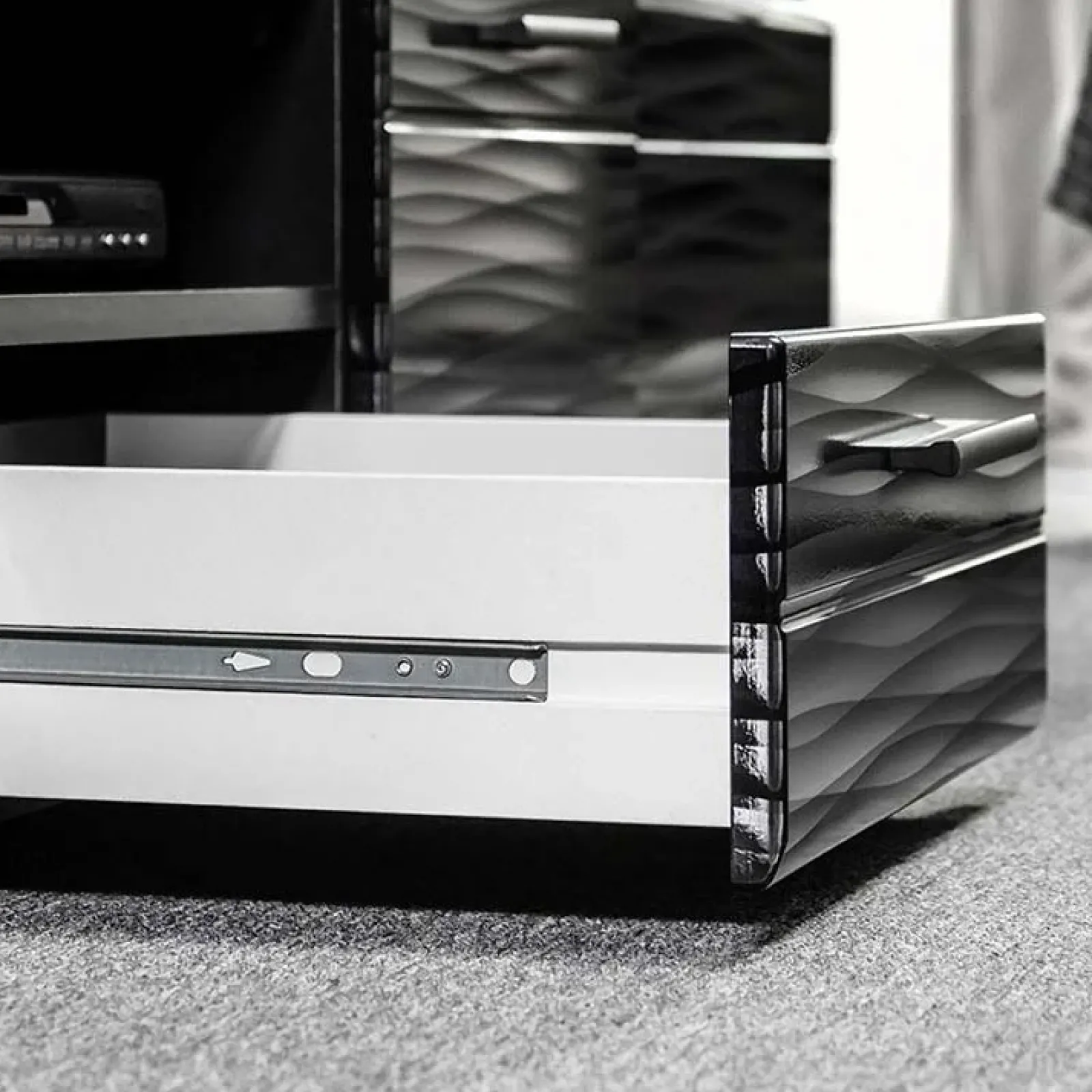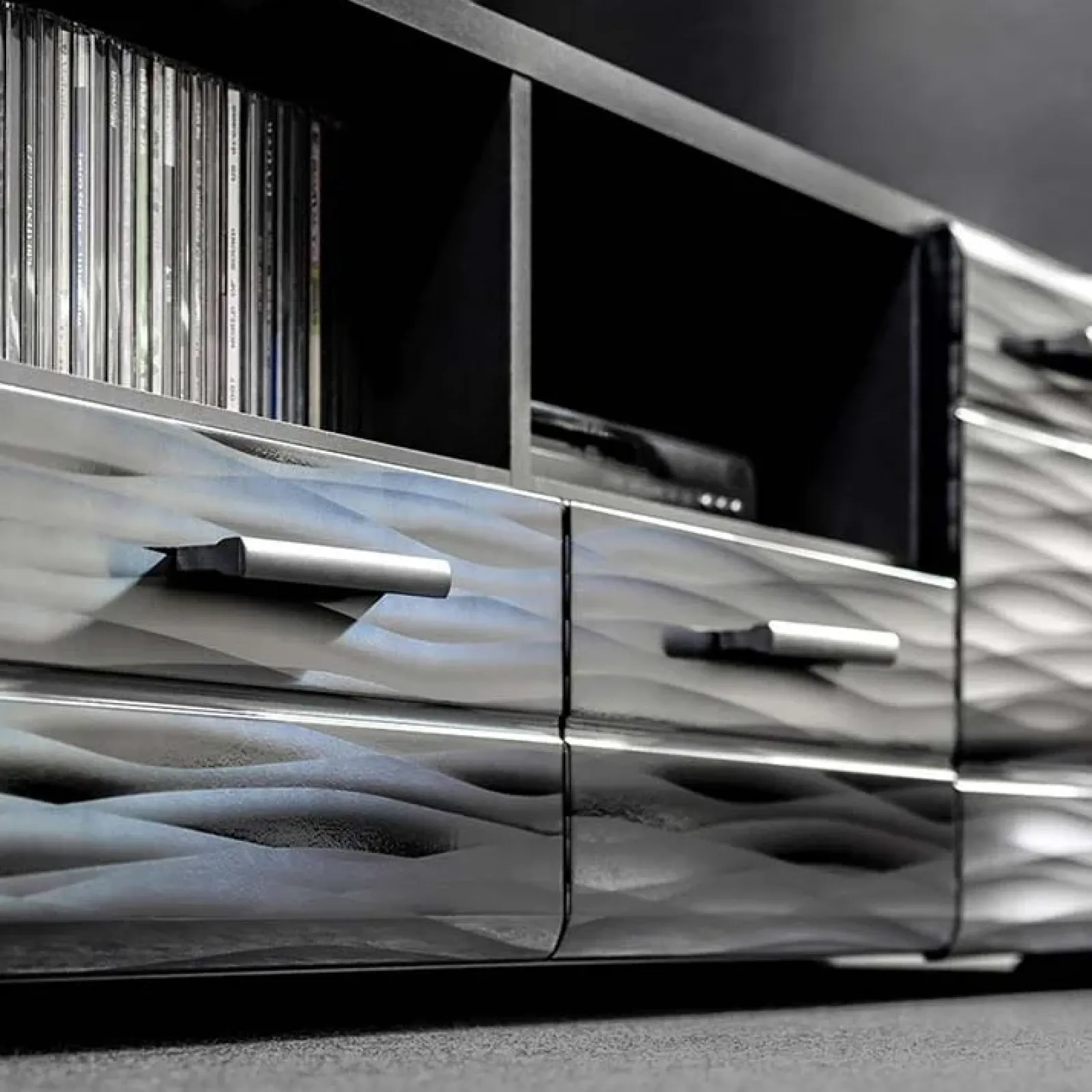 La Parete attrezzata Dana Gihome® è una soluzione spaziosa e compatta, dal design innovativo e moderno. Il dettaglio che valorizza maggiormente questa parete attrezzata è sicuramente la sua finitura nera e l’effetto 3D nero lucido cangiante sui frontali.