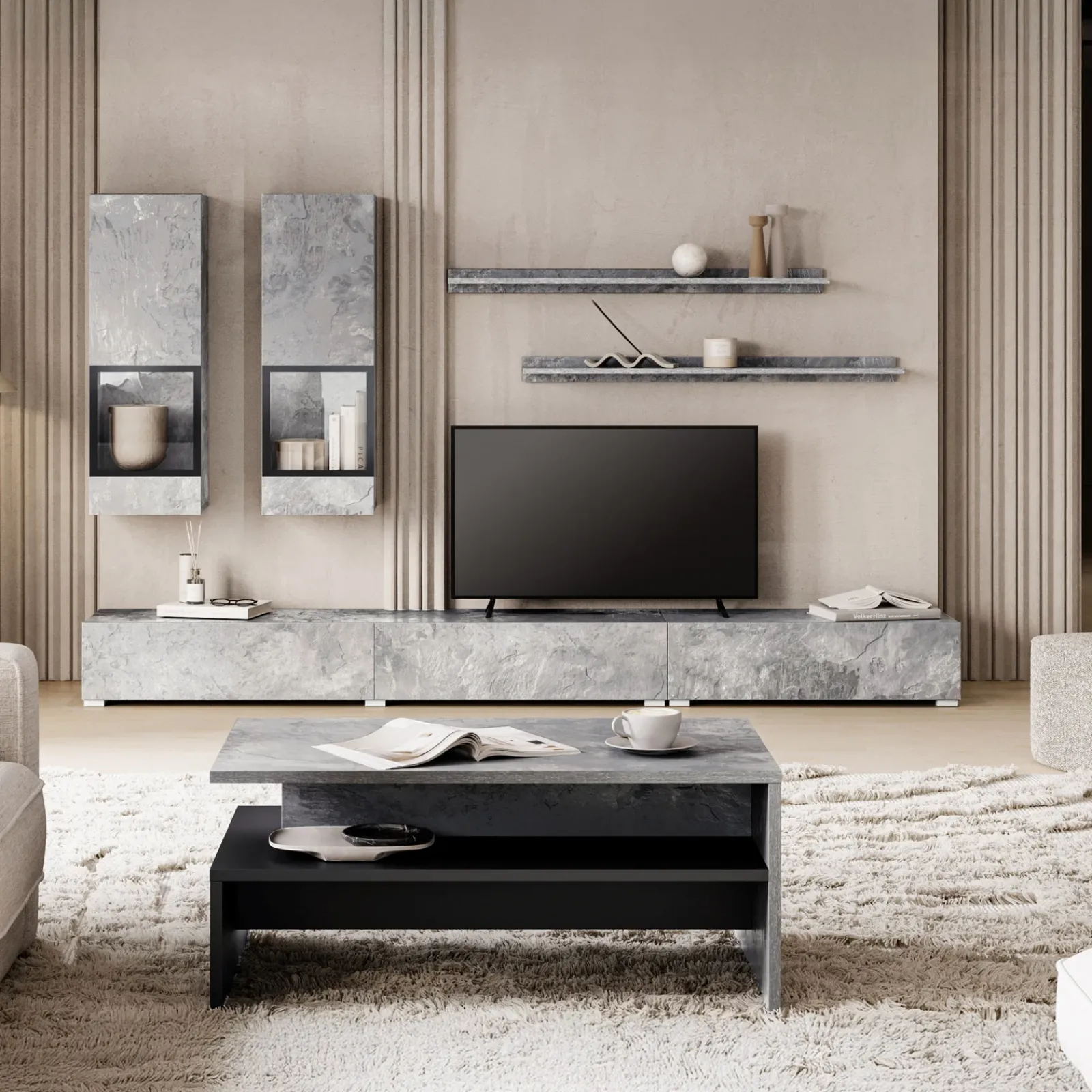 Parete attrezzata moderna 270x176cm grigio cemento nero Emotion Gihome®: una composizione dalle linee contemporanee e di tendenza, capace di donare particolarità all’ambiente.