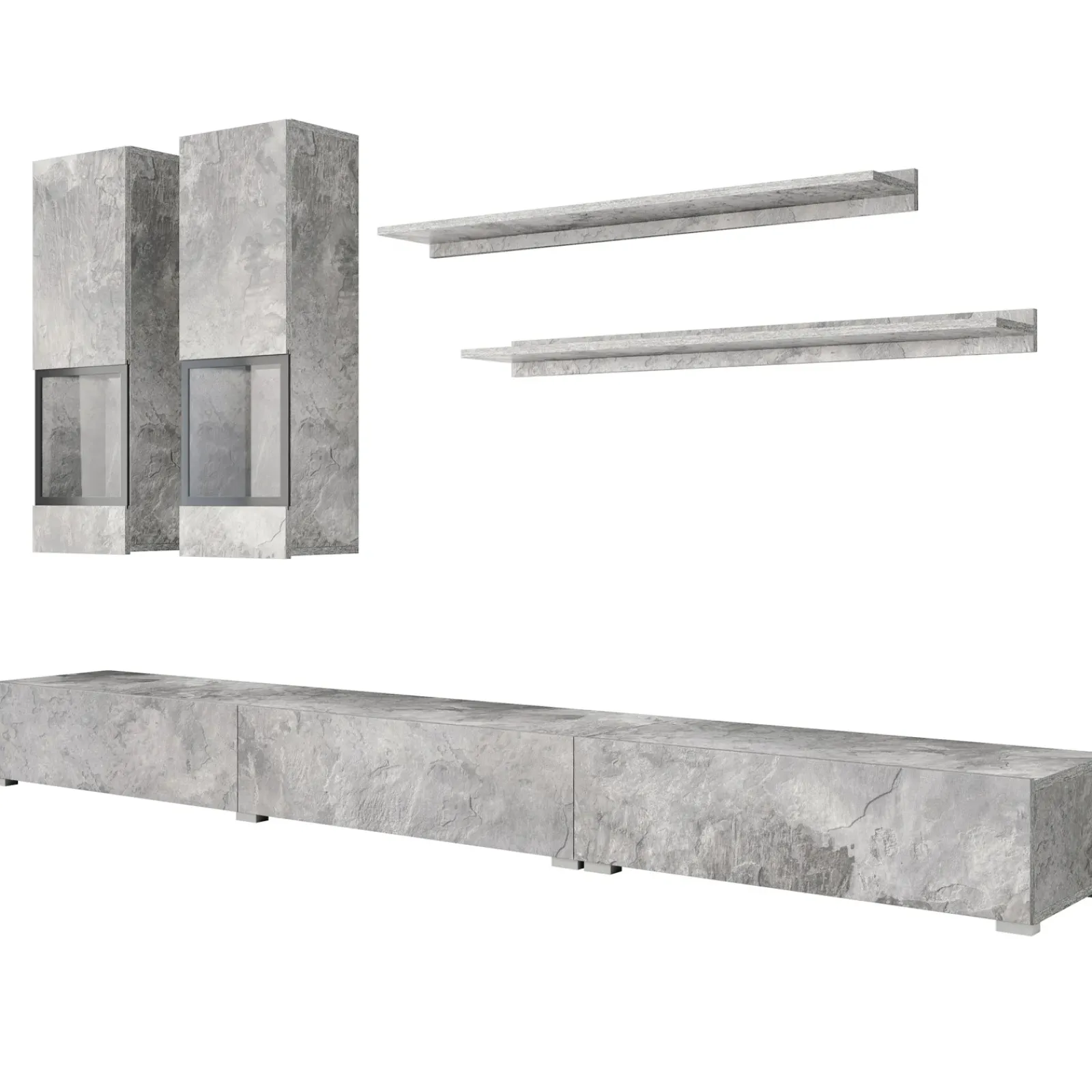 Garnero Arredamenti Parete Attrezzata A Terra|Pareti Attrezzate-Parete attrezzata 270x176h cm moderna grigio Emotion Gihome® Cemento