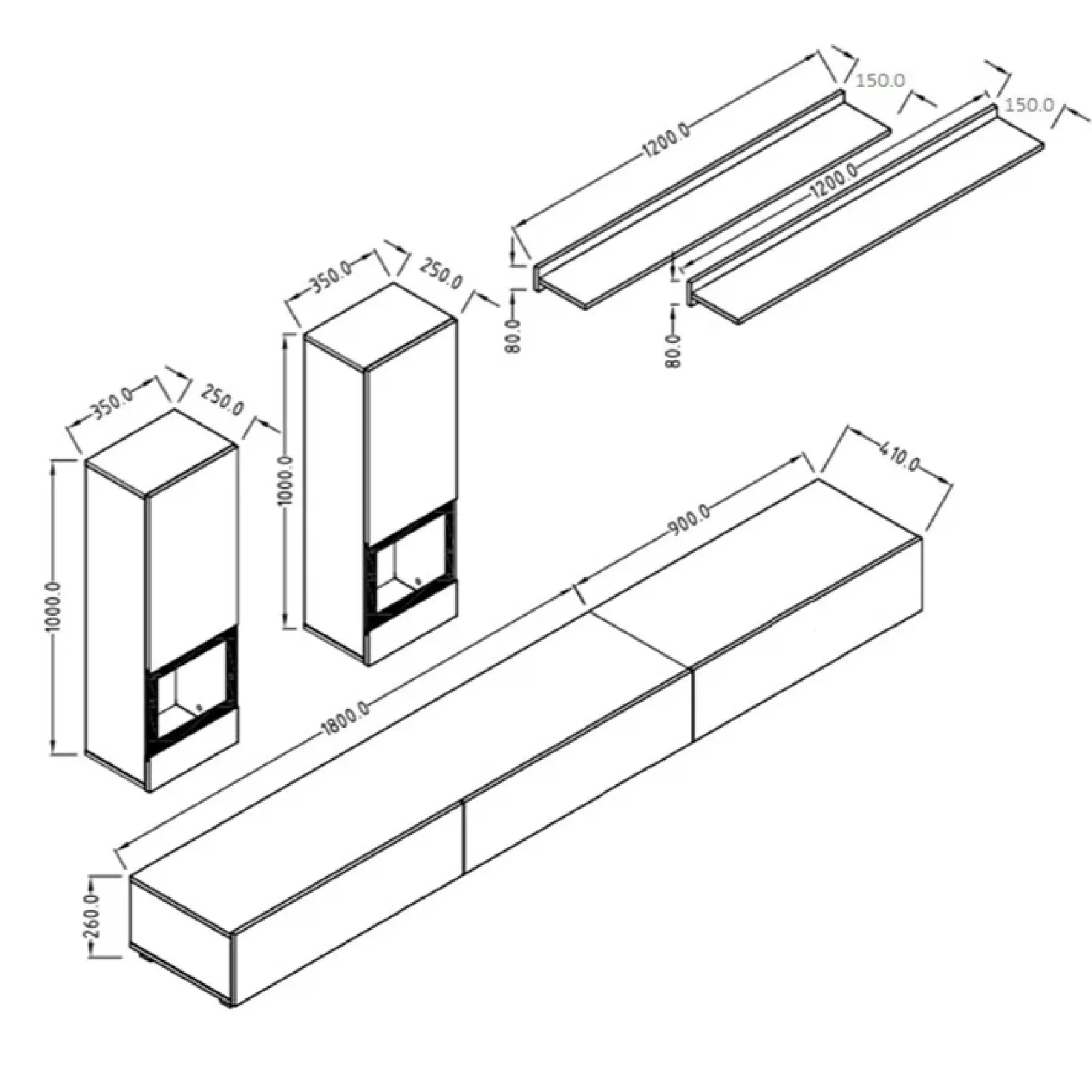 - dimensioni mensole (x2): L.120 x H.8 x P.15 cm