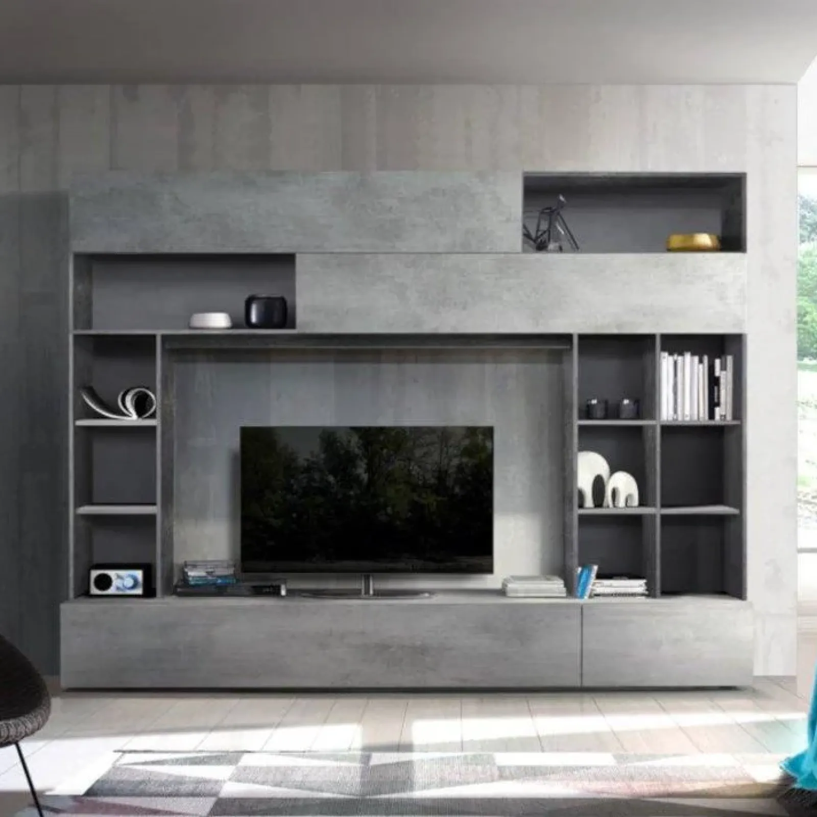 Parete attrezzata soggiorno 277x211cm ossido cemento Illuminum