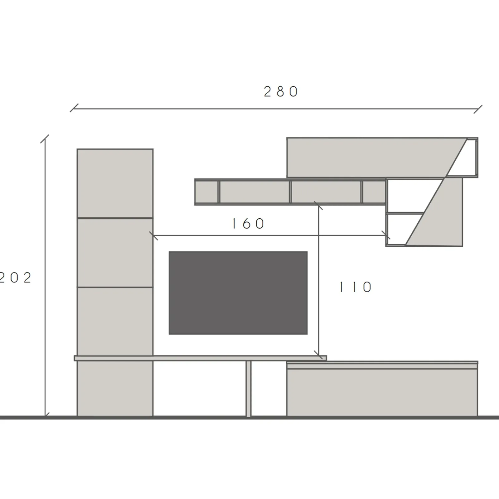 | Dimensioni totali | L.280 x H.202 x P.40 cm |