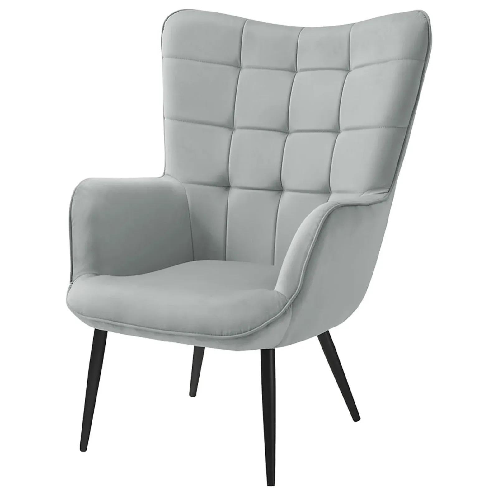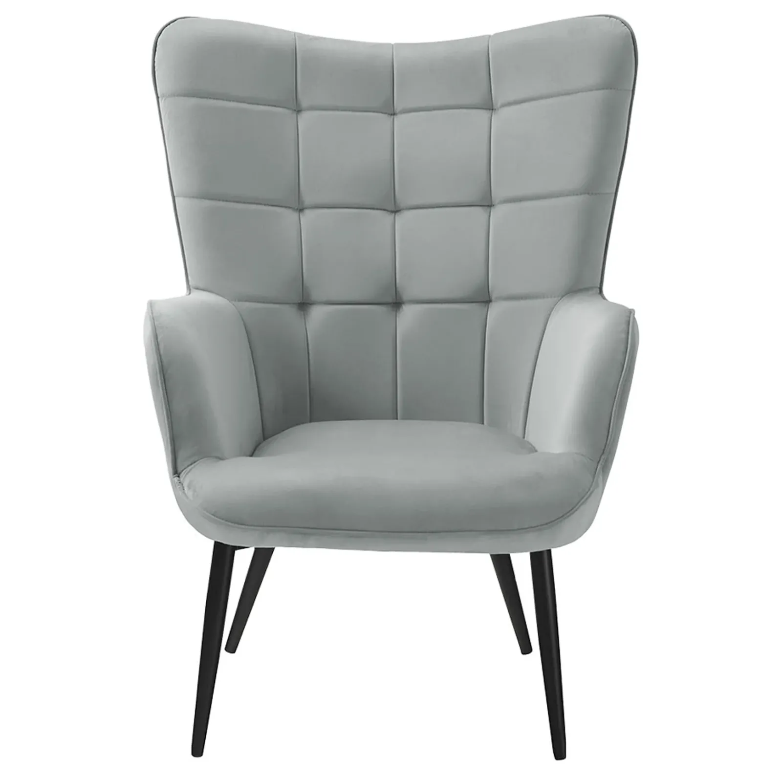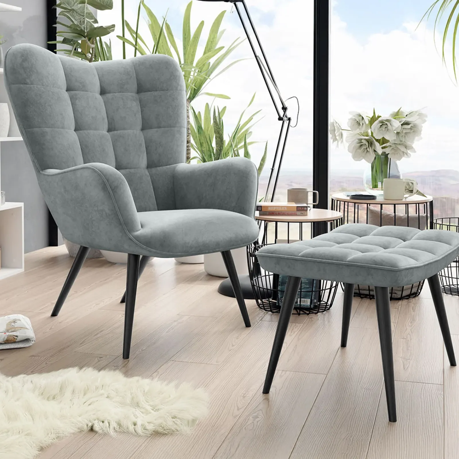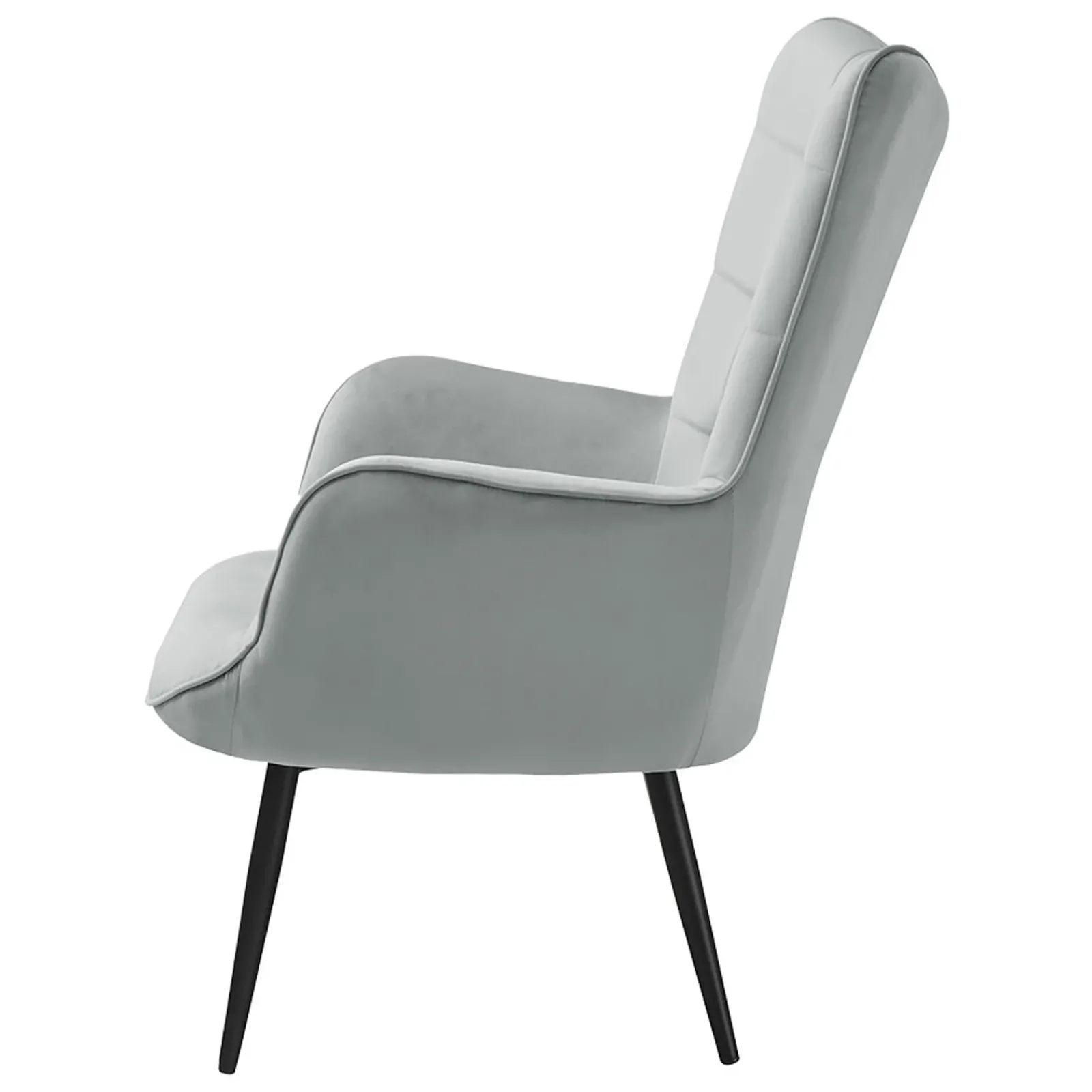 Poltrona imbottita con poggiapiedi in velluto grigio chiaro Siena
