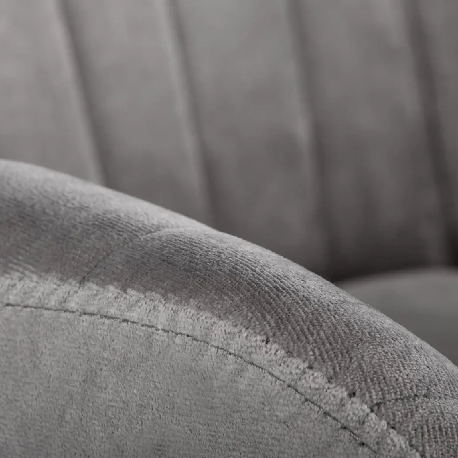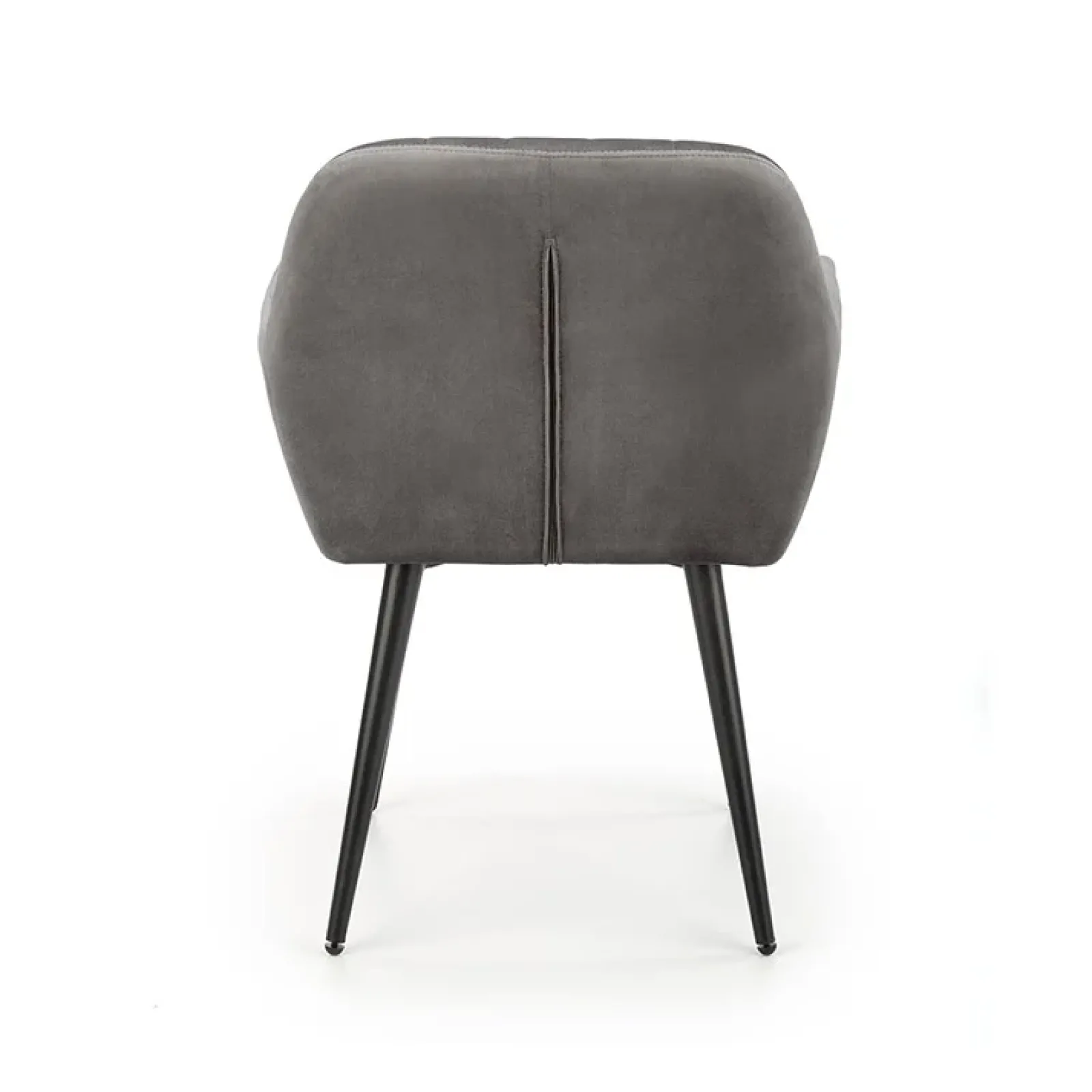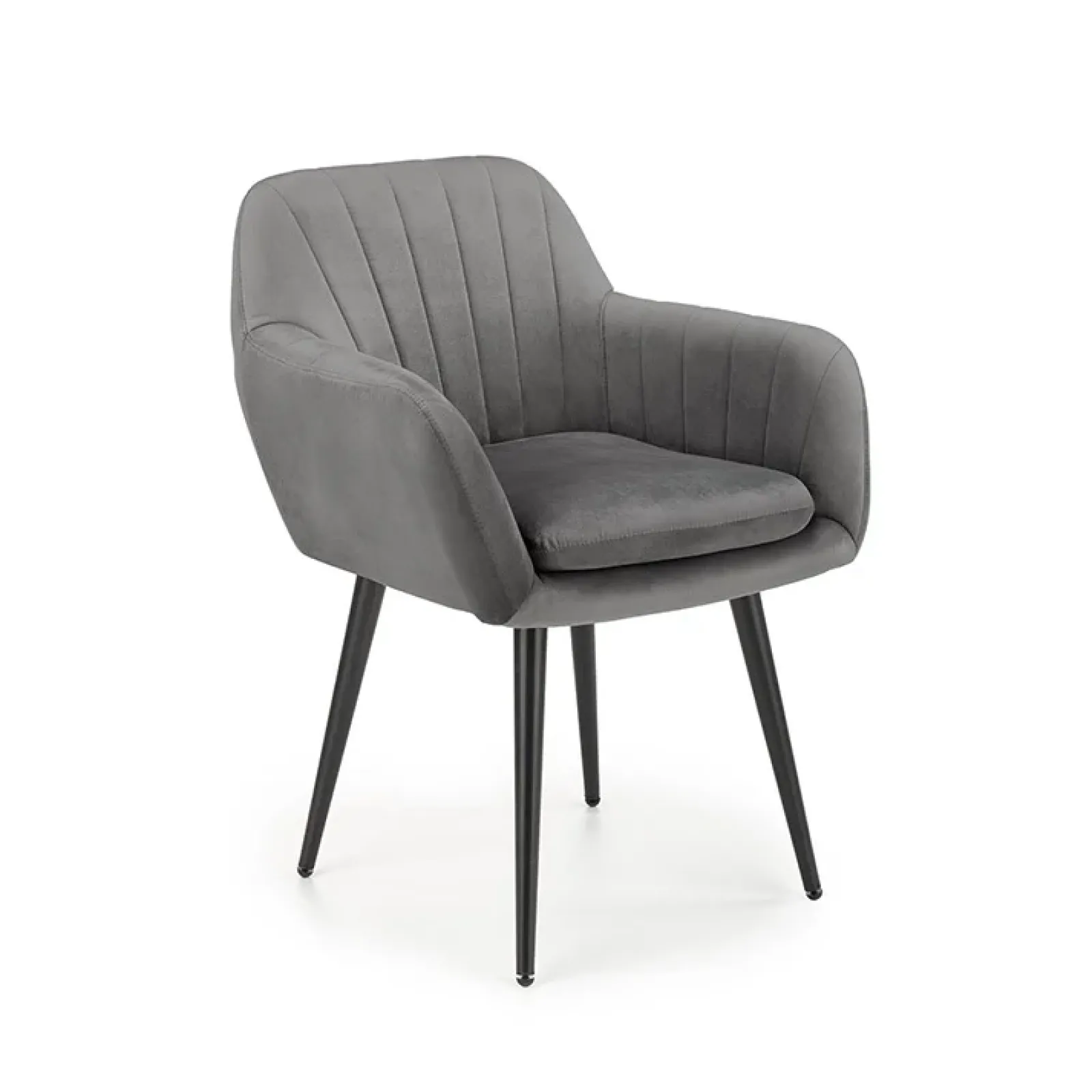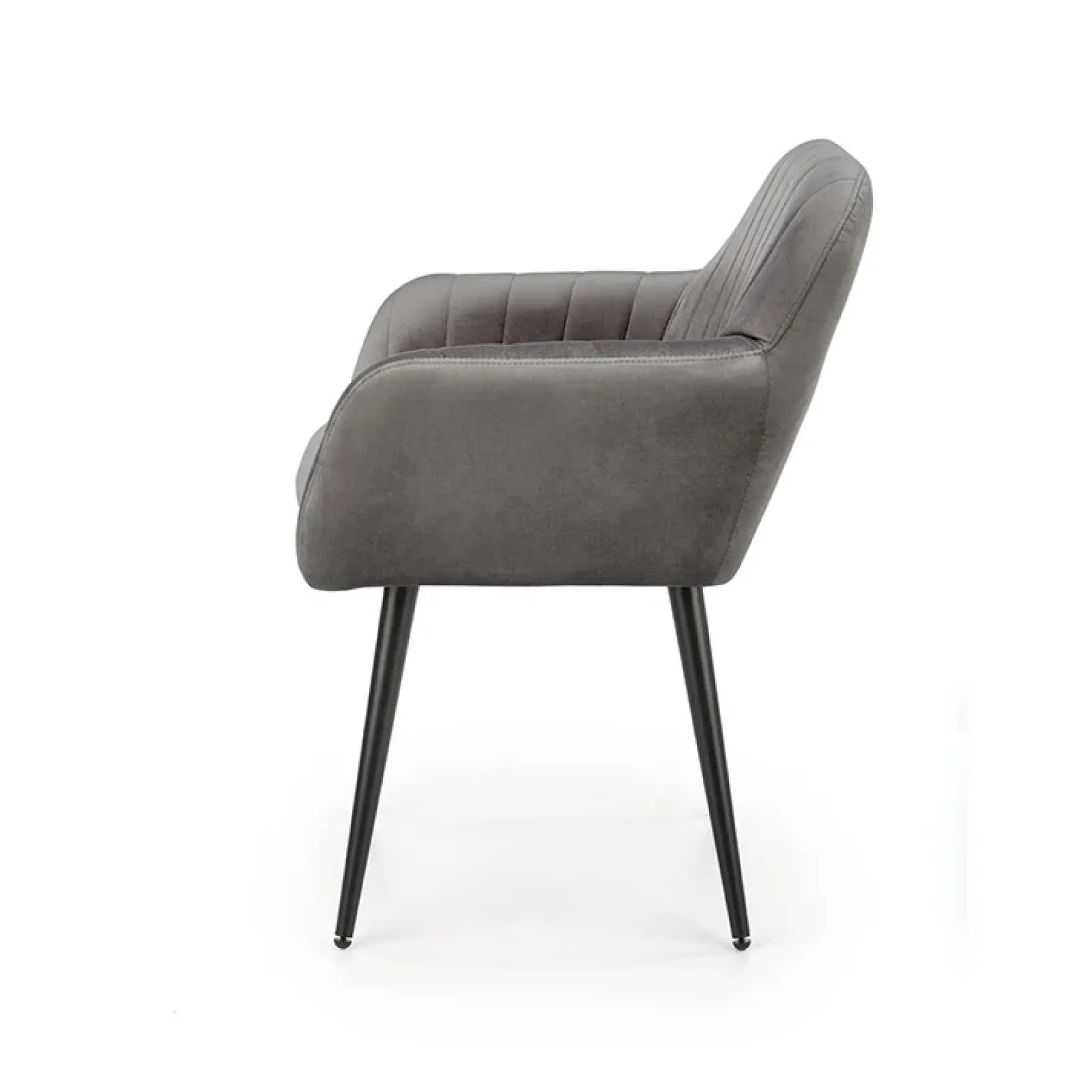Rivestita in un morbido velluto grigio scuro, regala una piacevole sensazione al tatto e un colpo d’occhio sofisticato. I braccioli avvolgenti e la seduta generosa offrono un comfort superiore, ideale per cene lunghe e conversazioni senza fretta.