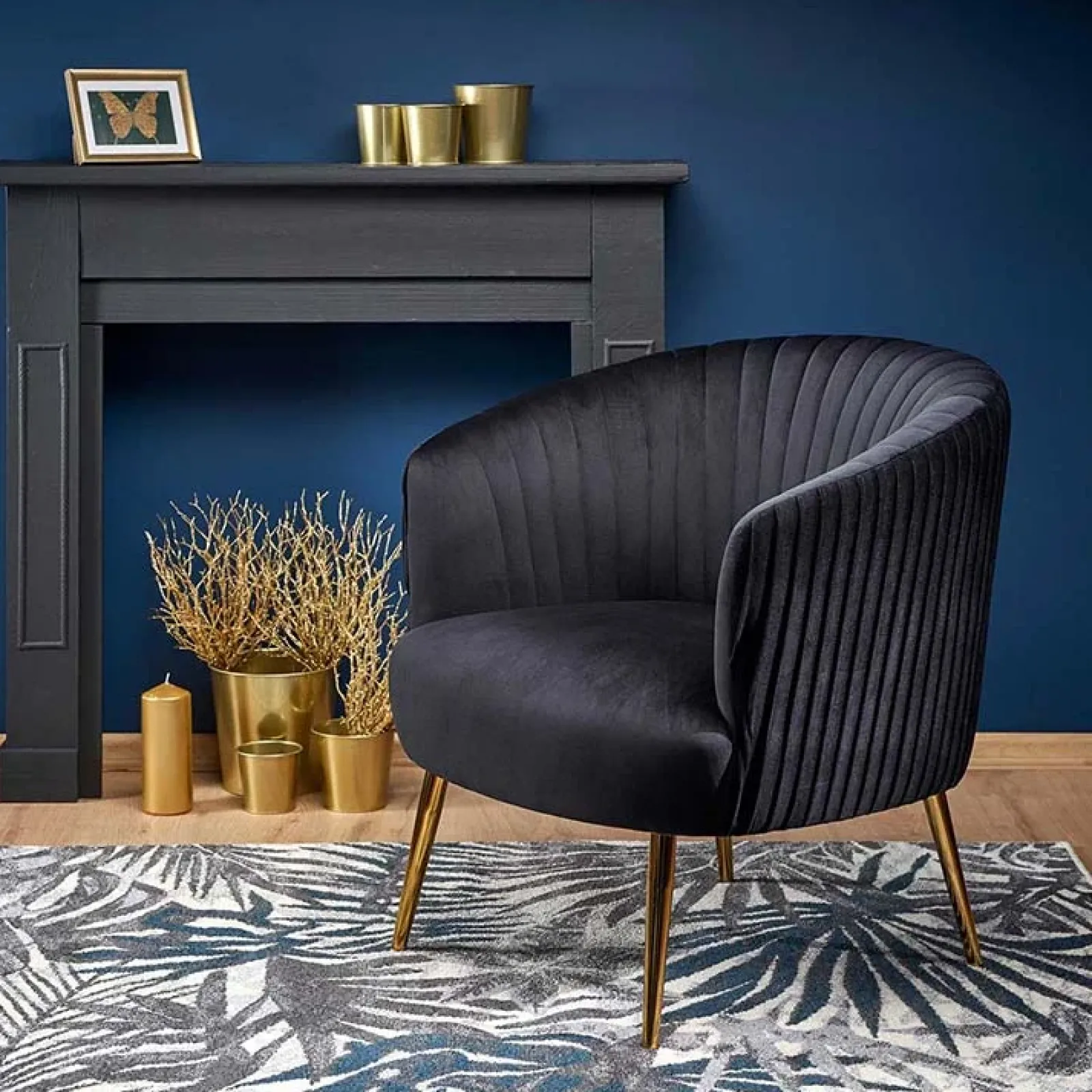 Poltroncina cocktail Romance Nera in velluto nero con gambe oro