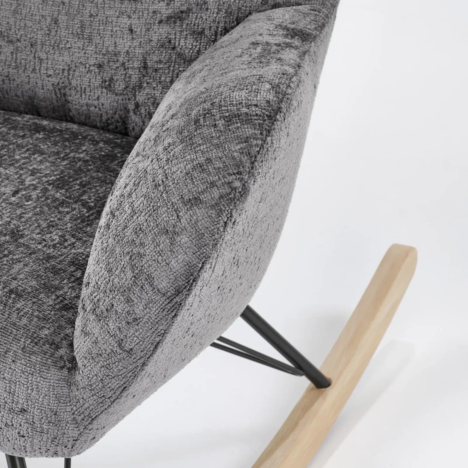 Con la sua morbida imbottitura e il rivestimento in tessuto grigio raffinato, Isla trasmette una sensazione di calma e armonia. Il suo movimento oscillante, delicato e silenzioso, grazie all’appoggio in legno massello, accompagna ogni momento: che sia una pausa con un libro tra le mani, un caffè sorseggiato in silenzio o la tenerezza di un momento di allattamento, cullato dalla complicità tra una mamma e il suo bambino – un invito a lasciarsi avvolgere dalla dolcezza del tempo che rallenta.