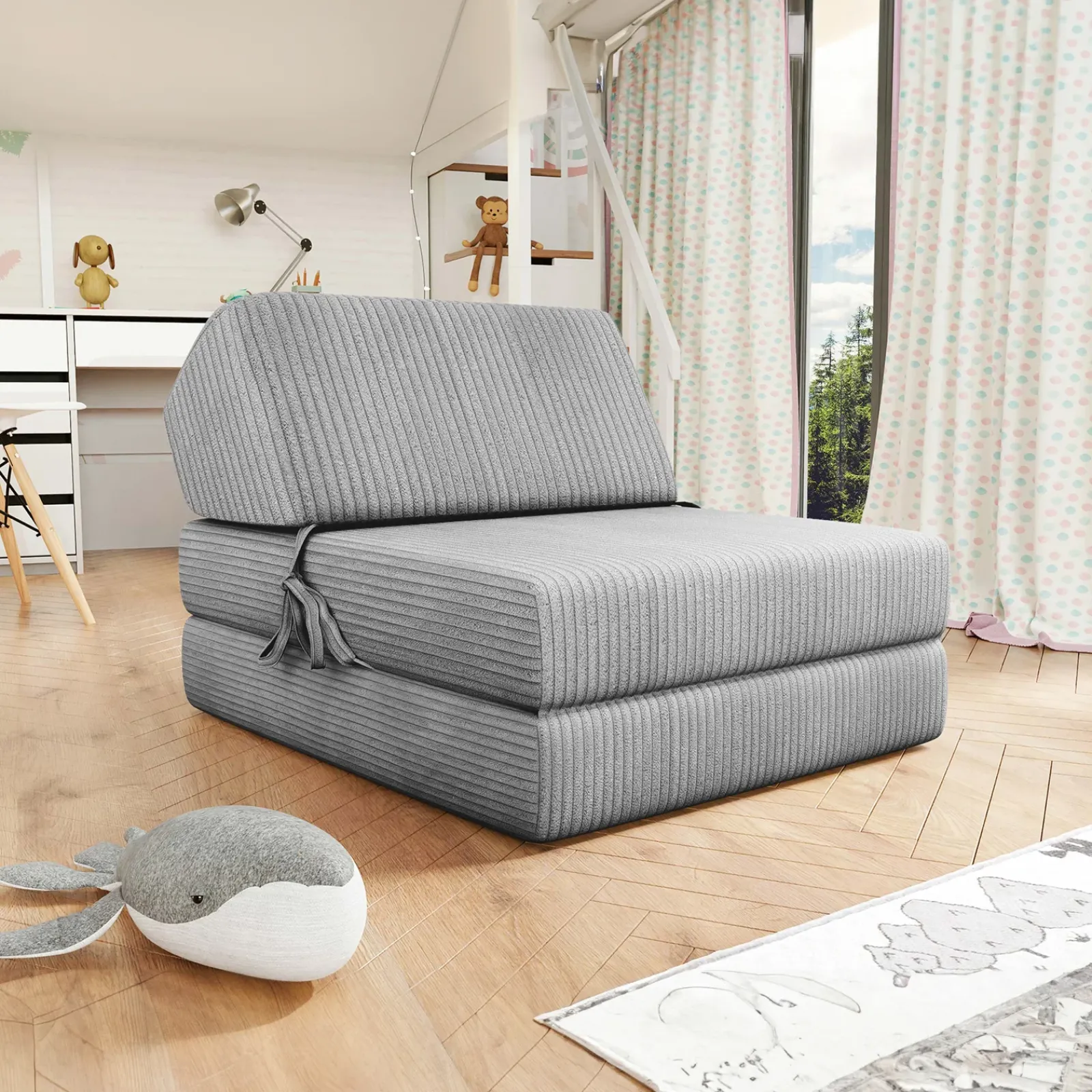 Poltrona divano letto pieghevole 90cm velluto a coste grigio Lorin