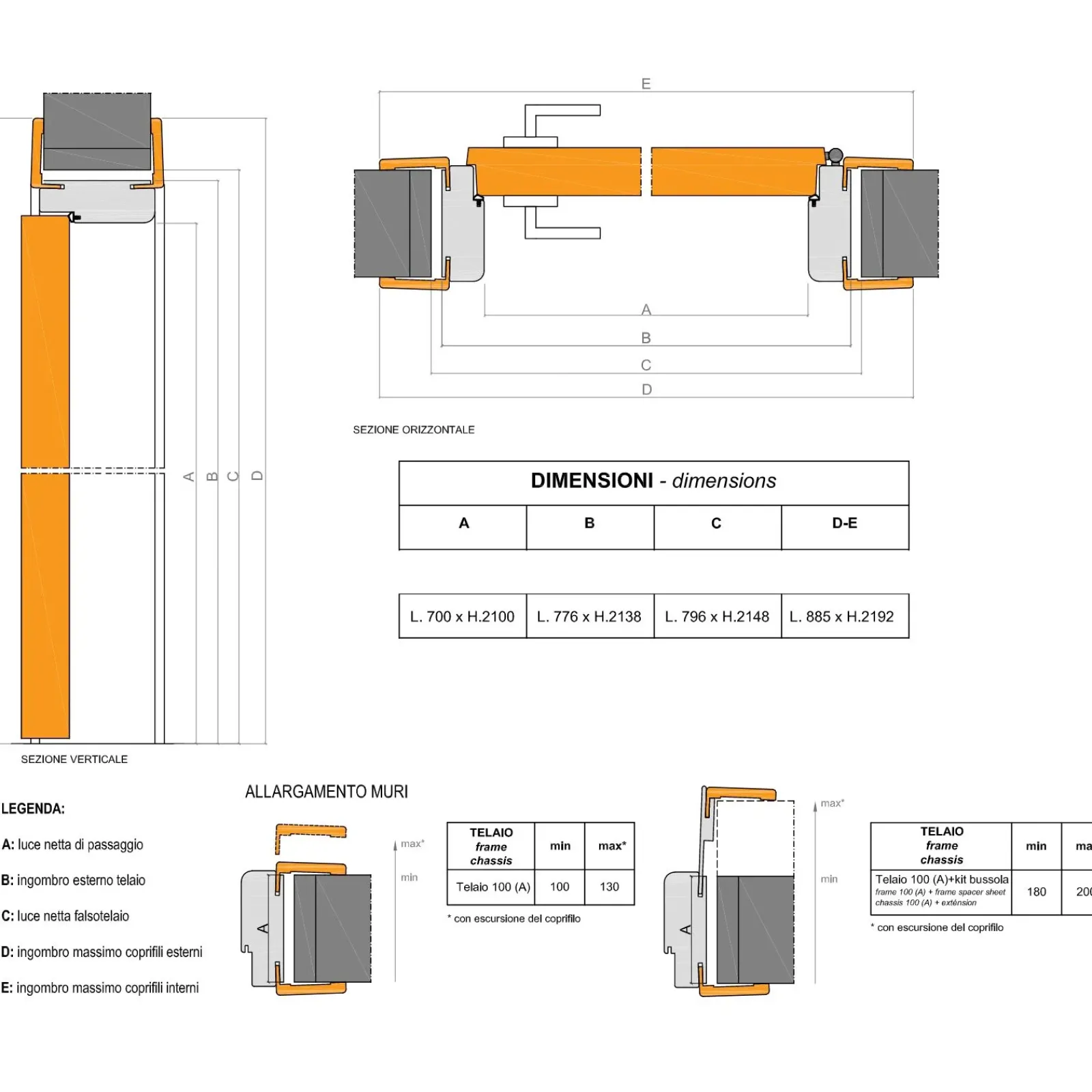 - telaio ferrato 10 cm con cerniere anuba reversibili