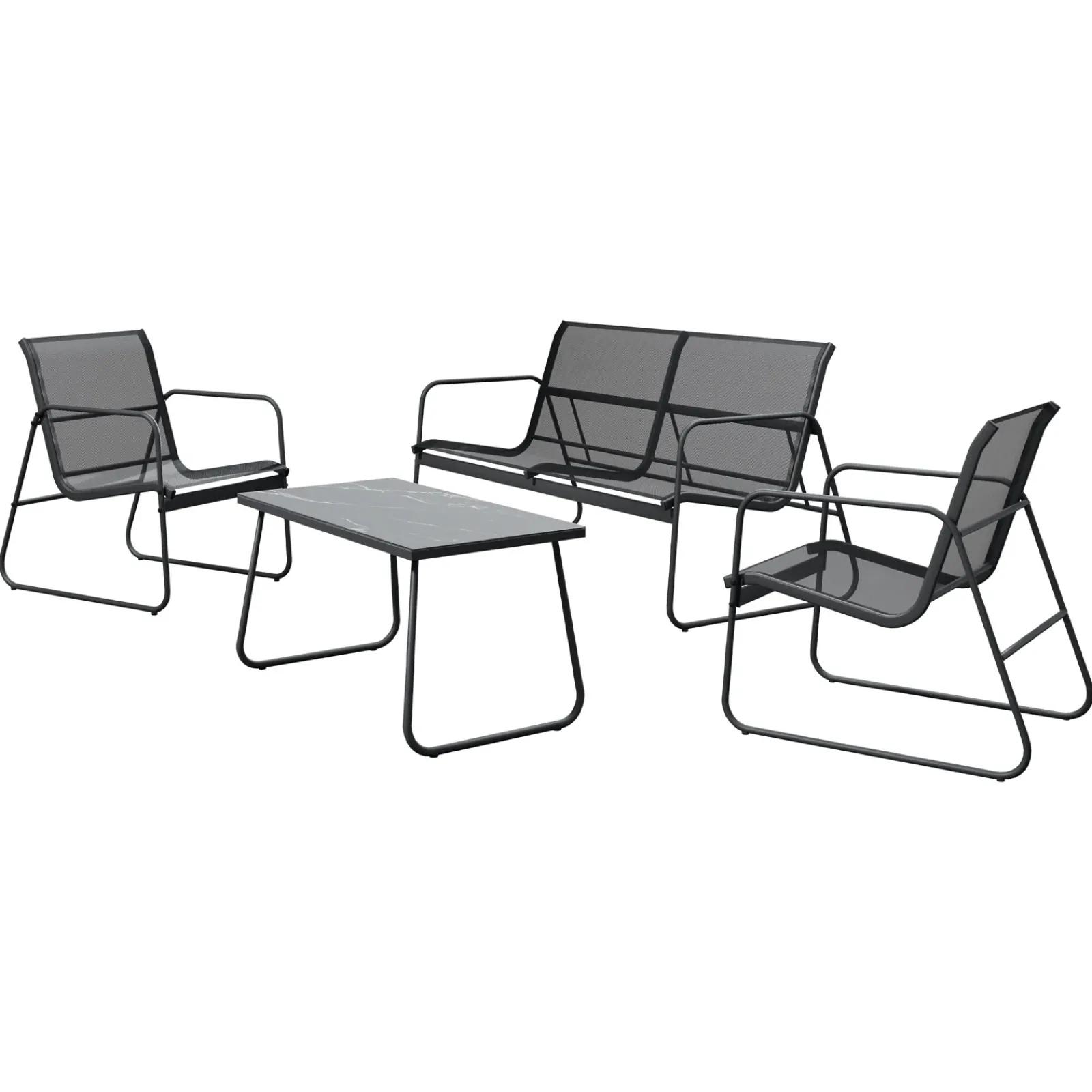 Scopri il salotto da giardino 4 posti Zeno, la scelta ideale per un angolo di comfort e stile all’aperto. Questo set da 4 posti è composto da due comode poltrone, un divanetto e un tavolino arricchito dall’effetto marmo del piano superiore, tutti realizzati con una solida struttura in acciaio, progettata per offrire resistenza e durata nel tempo. Le sedute in rete tessile color antracite garantiscono un comfort superiore, grazie alla loro traspirabilità e facilità di manutenzione, rendendole perfette per l’uso esterno. Il design moderno e minimalista di Zeno si adatta facilmente a qualsiasi ambiente, conferendo un tocco elegante e sofisticato al tuo giardino, terrazzo o patio. Per preservarne la bellezza e la durata, è consigliato riporlo in un luogo protetto o utilizzare coperture adeguate durante le stagioni più rigide, evitando esposizioni prolungate a pioggia, neve e ghiaccio.