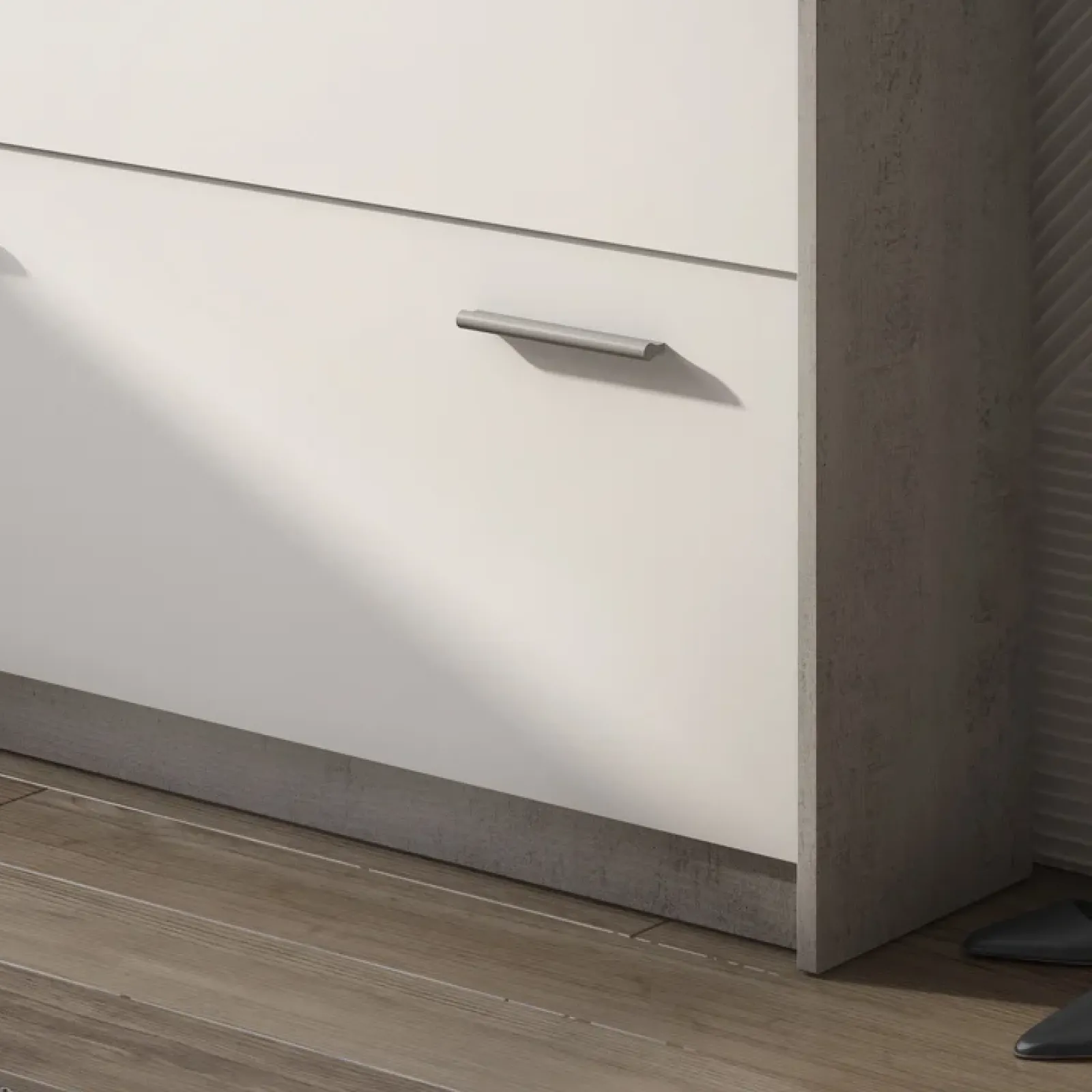 Scarpiera 2 ante ribalta 98x81cm bianco frassinato cemento Thomas