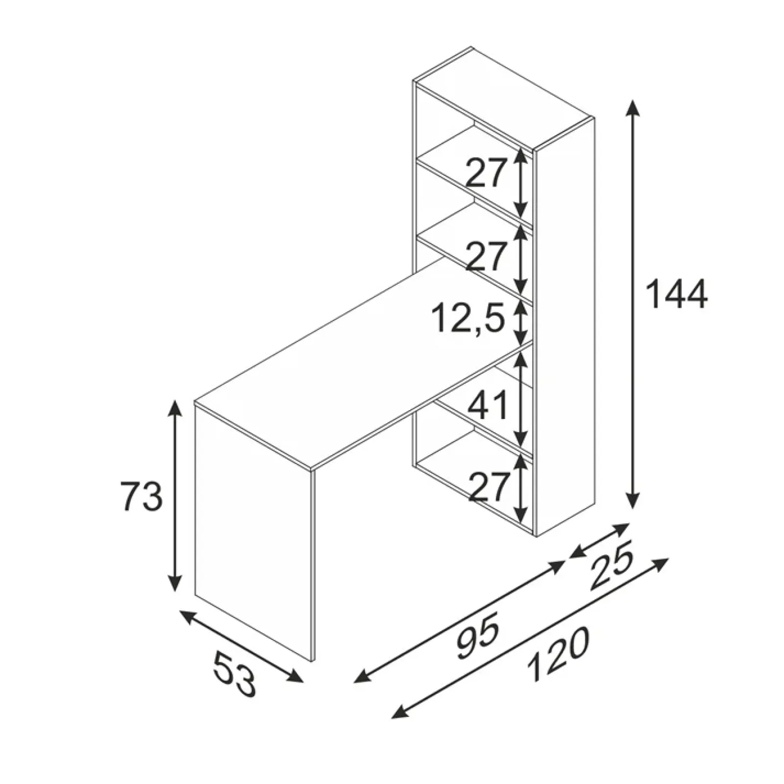 E’ una scrivania dalle piccole dimensioni. Grazie alla libreria integrata avrai tanto spazio per libri, raccoglitori e tutto ciò di cui hai bisogno per il tuo home office.