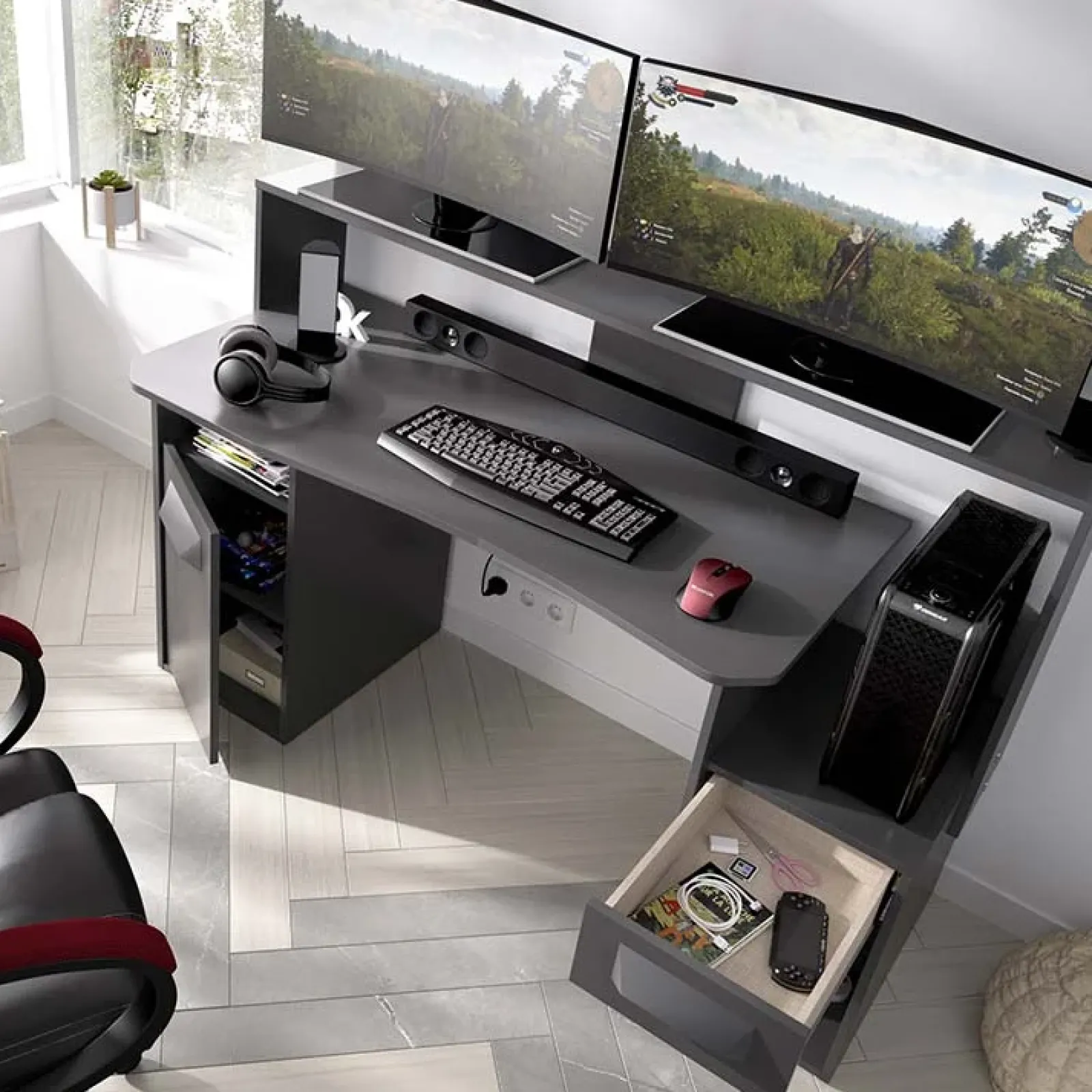Seneca è la scrivania gaming che fa per te! Grazie alla sua struttura studiata prestando la massima attenzione per i dettagli, è perfetta per soddisfare tutte le diverse necessità!