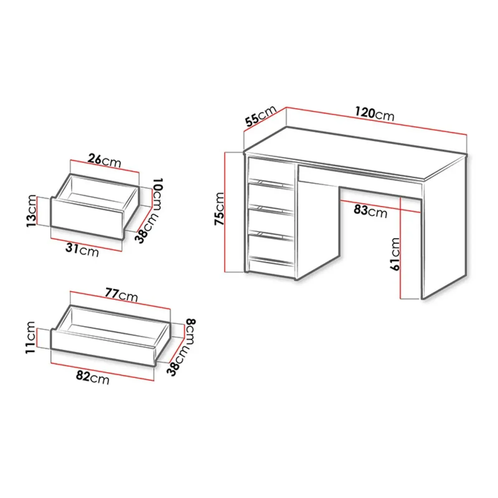 - scrivania reversibile: i cassetti possono essere montati sul lato sinistro o destro