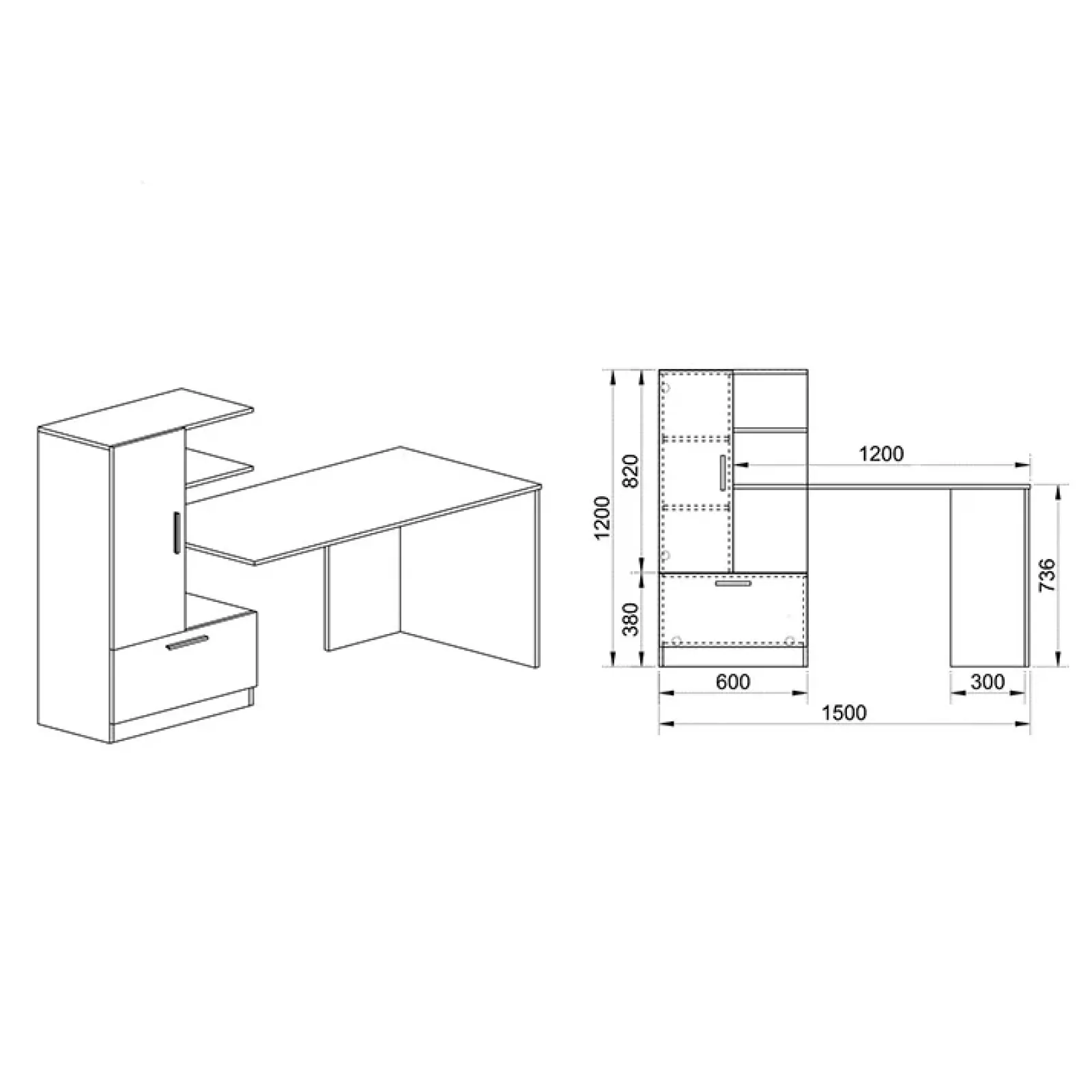 - dimensioni: L.150 x P.59 x H.120 cm