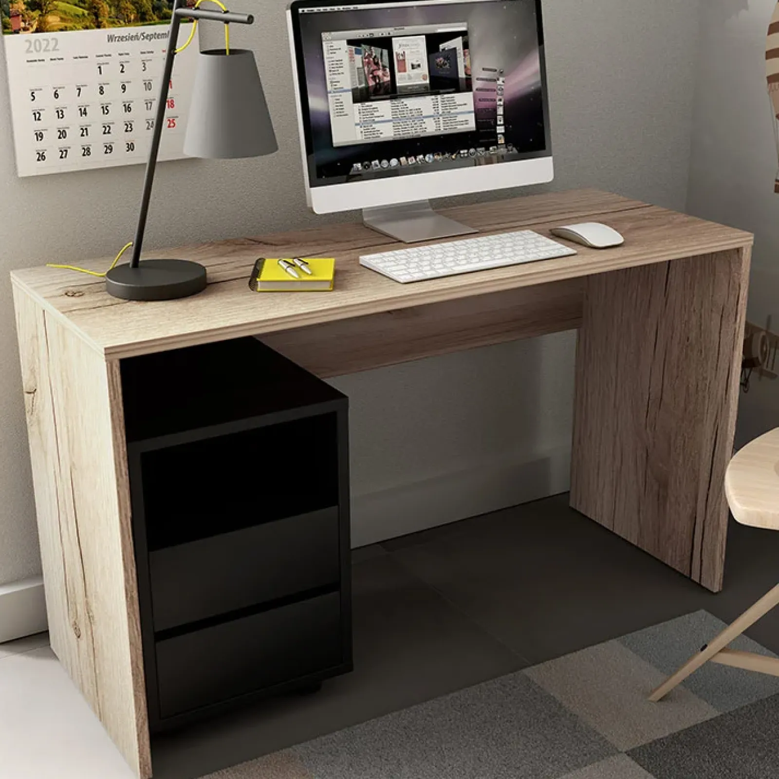 Garnero Arredamenti Scrivanie Per Ragazzi|Scrivanie Ufficio-Scrivania ufficio moderna 130x50cm cassettiera rovere Callum Rovere – Nero opaco