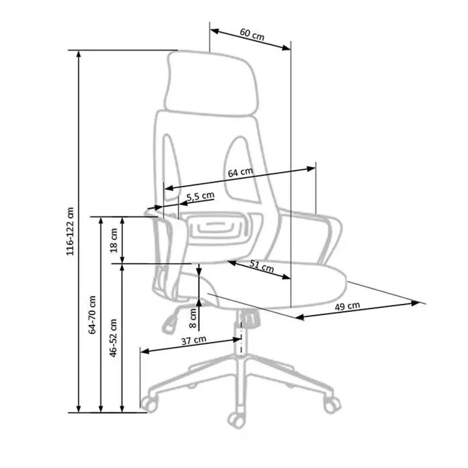 - Dimensioni: L.64 x P.60 x H.116-122 cm