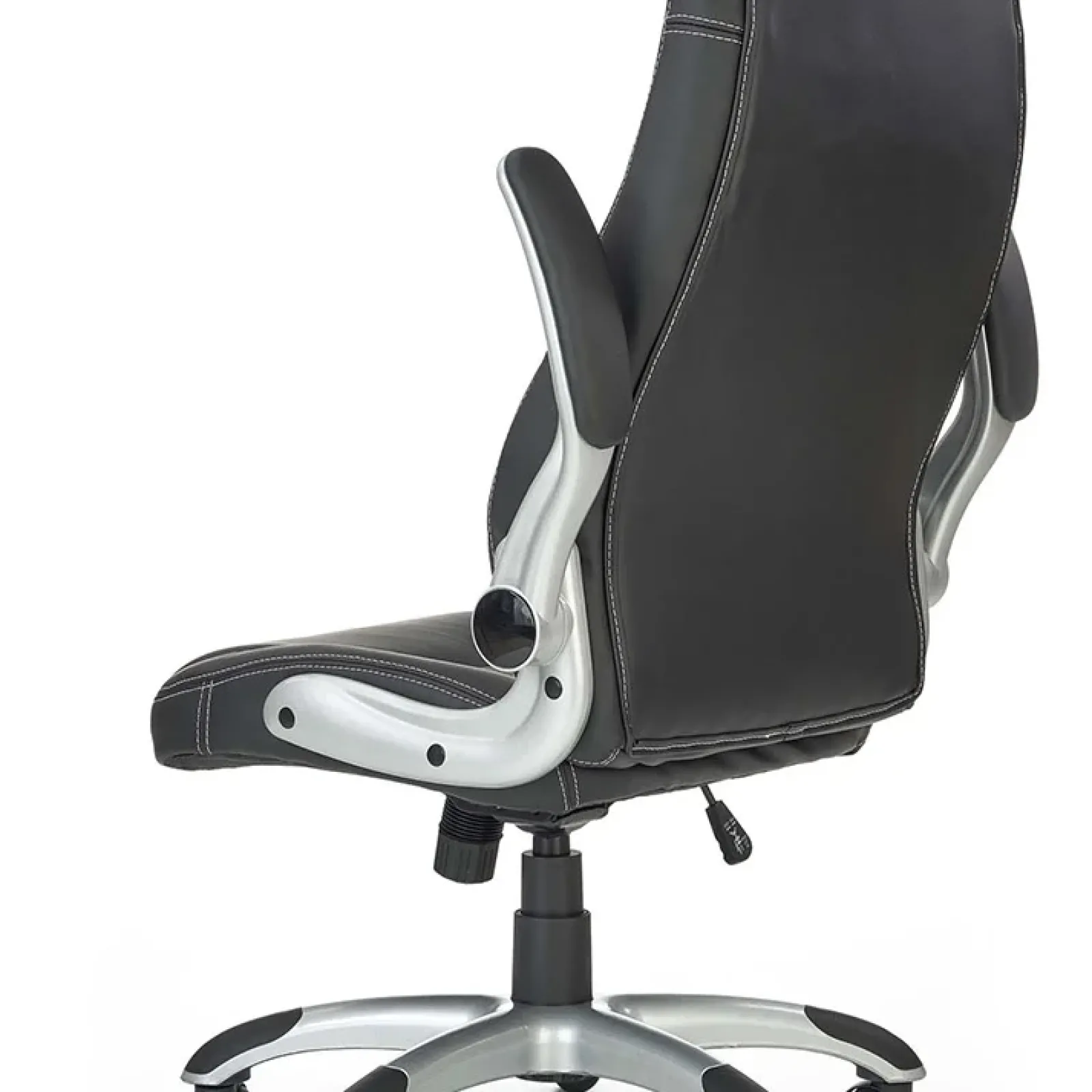 Sedia da ufficio con seduta in ecopelle traforata nera. La sedia è regolabile in altezza.