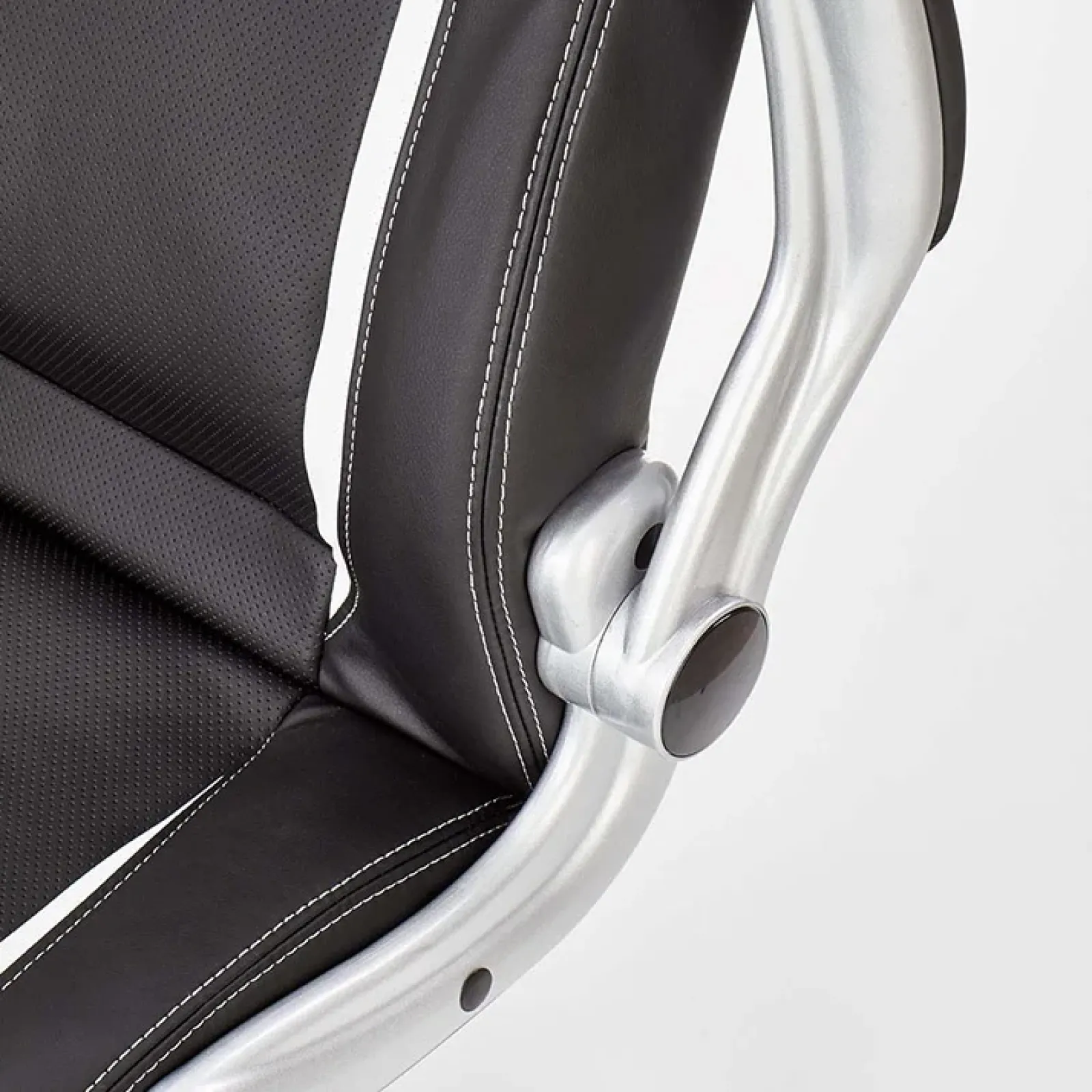 Sedia gaming da ufficio Mito in ecopelle traforata nera, modello che combina uno stile elegante ad un comfort elevatissimo.