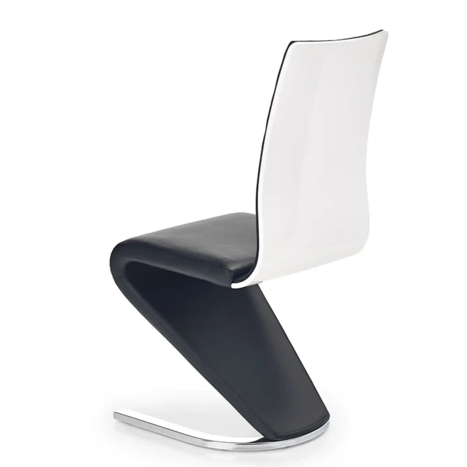 Sedia da pranzo moderna in ecopelle nero bianco gamba in acciaio Elina