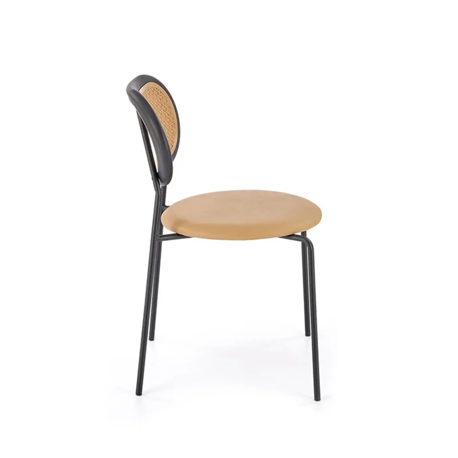 Set 4 sedie da sala in rattan ed ecopelle marrone chiaro Tiny
