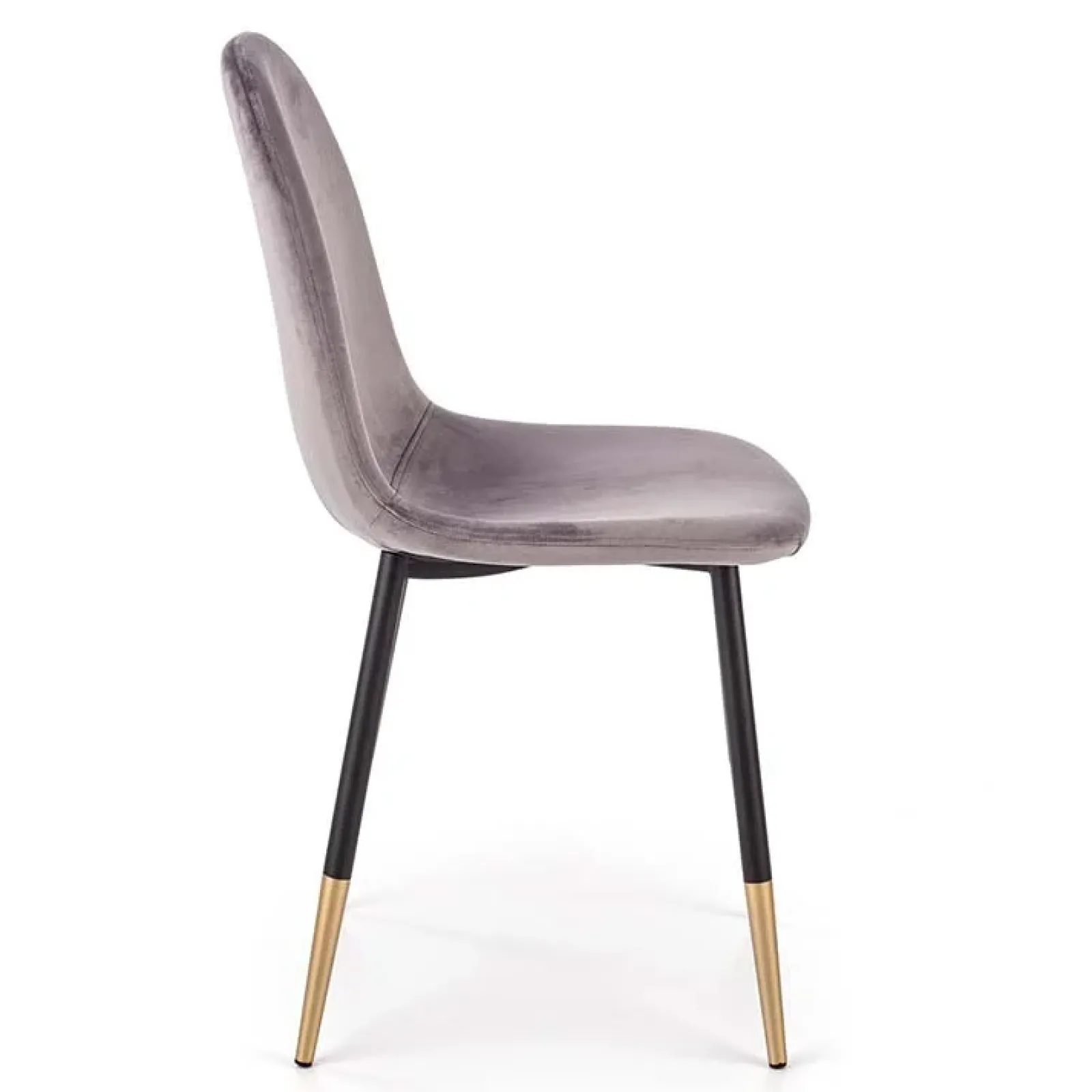 Nubia è una sedia caratterizzata da linee delicate e semplici, perfetta per arredare la zona living oppure un ufficio di grande carattere. Lo schienale e la seduta sono in tessuto di velluto grigio, mentre la struttura è composta da quattro gambe in acciaio oro e nero.