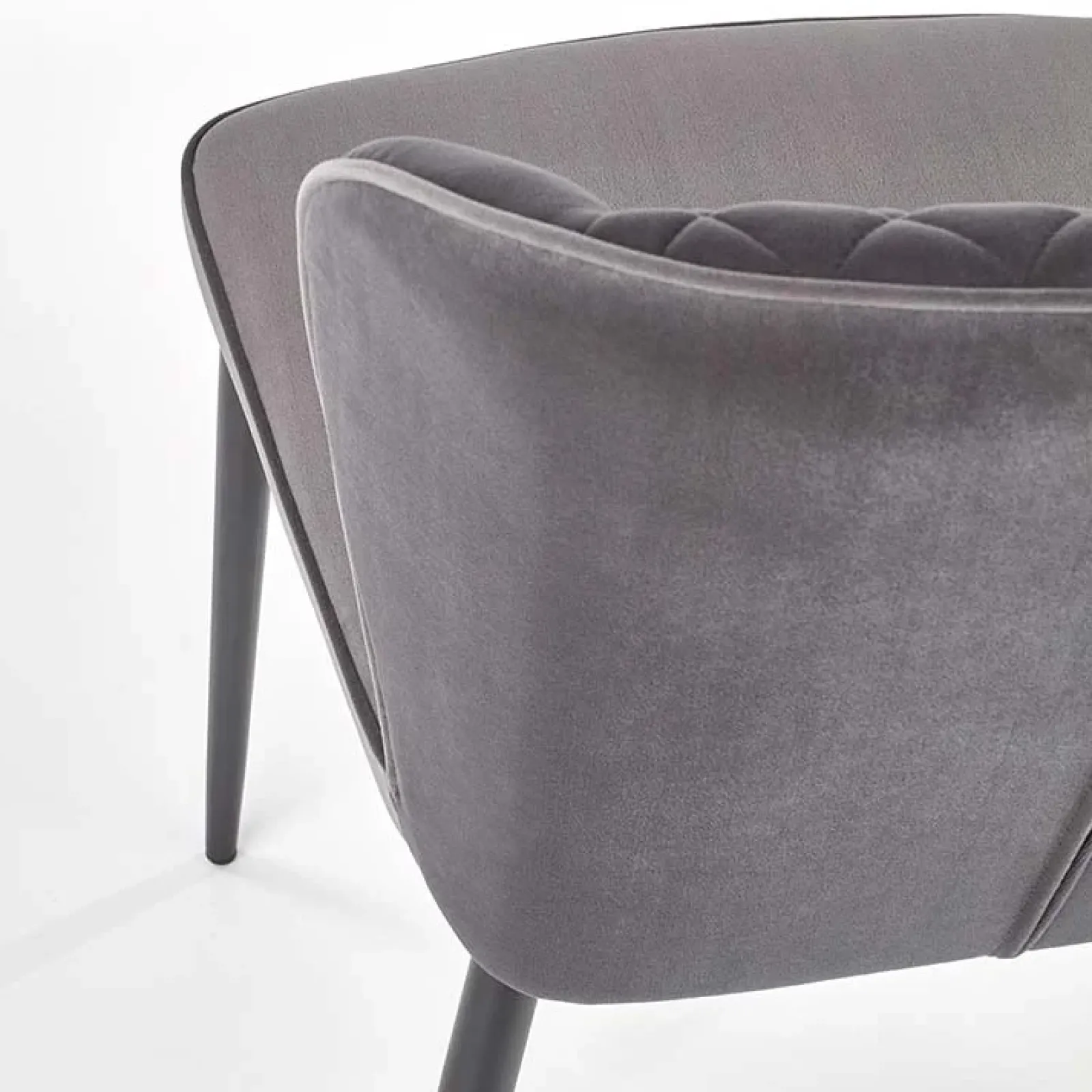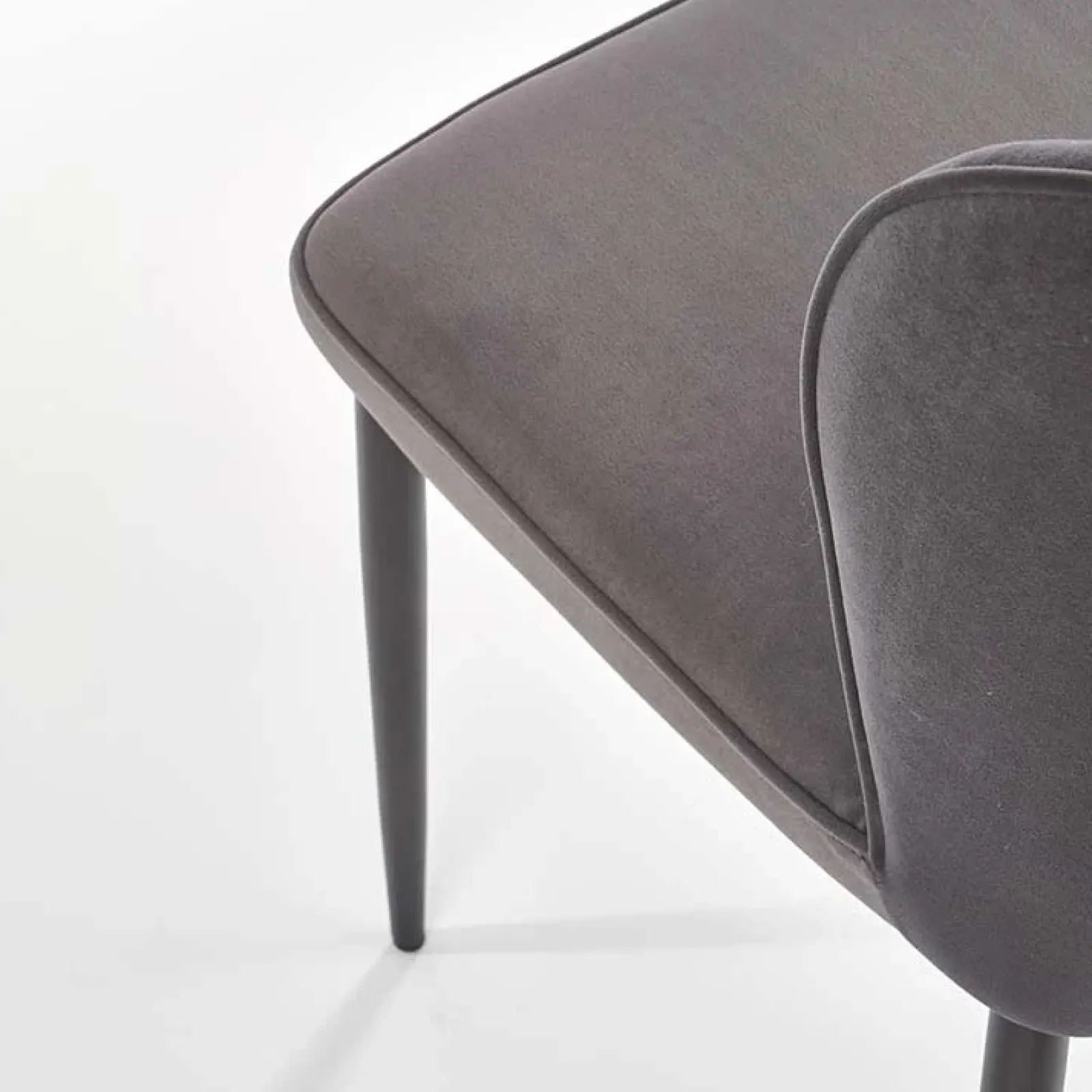 Doral è una sedia imbottita in velluto grigio, dal design innovativo e all’avanguardia, perfetta per arredare una sala da pranzo moderna o in un ambiente di lavoro raffinato e arredato con cura.