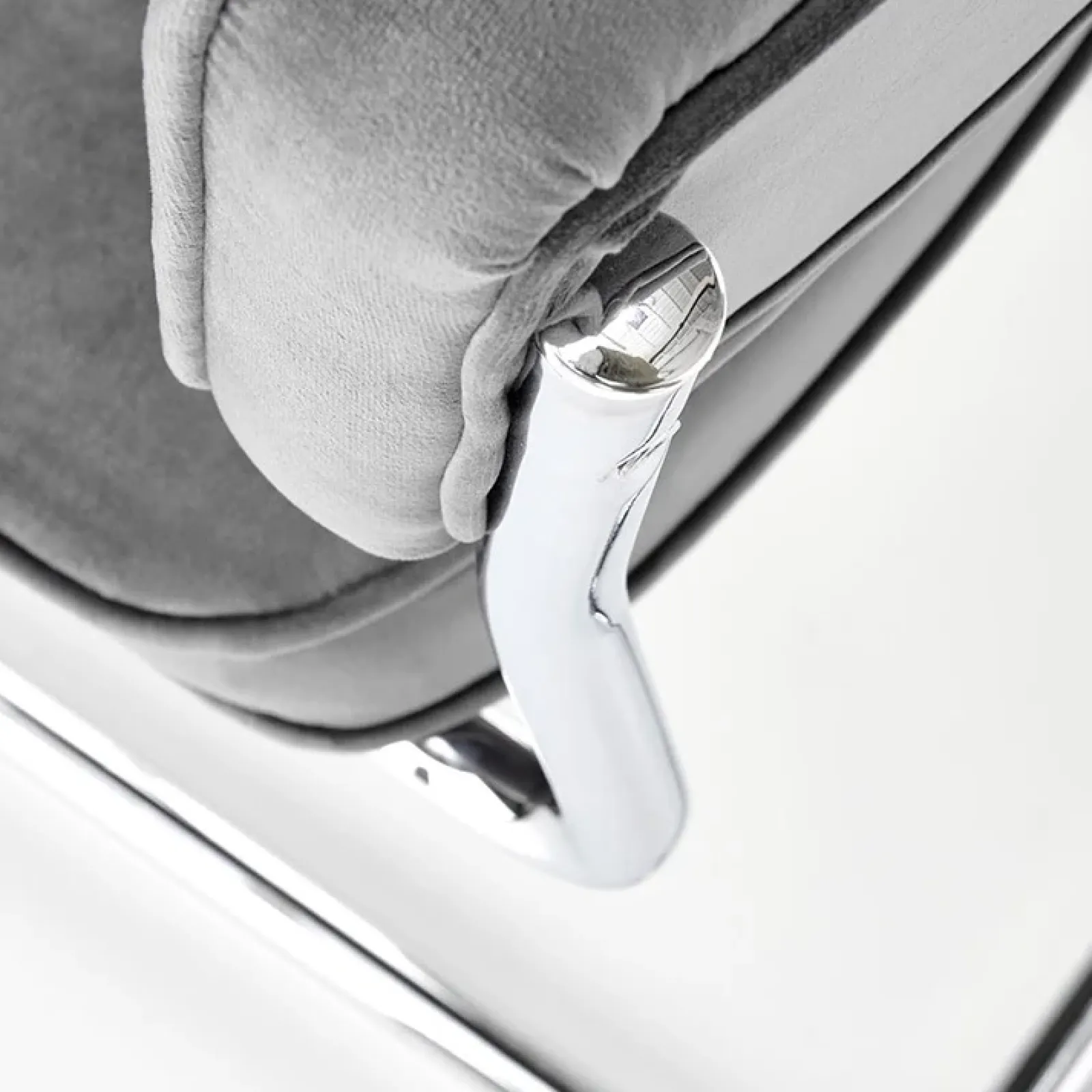 Sedia soggiorno moderna in velluto grigio acciaio Vader, si adatta con eleganza ad ogni ambiente della tua casa.