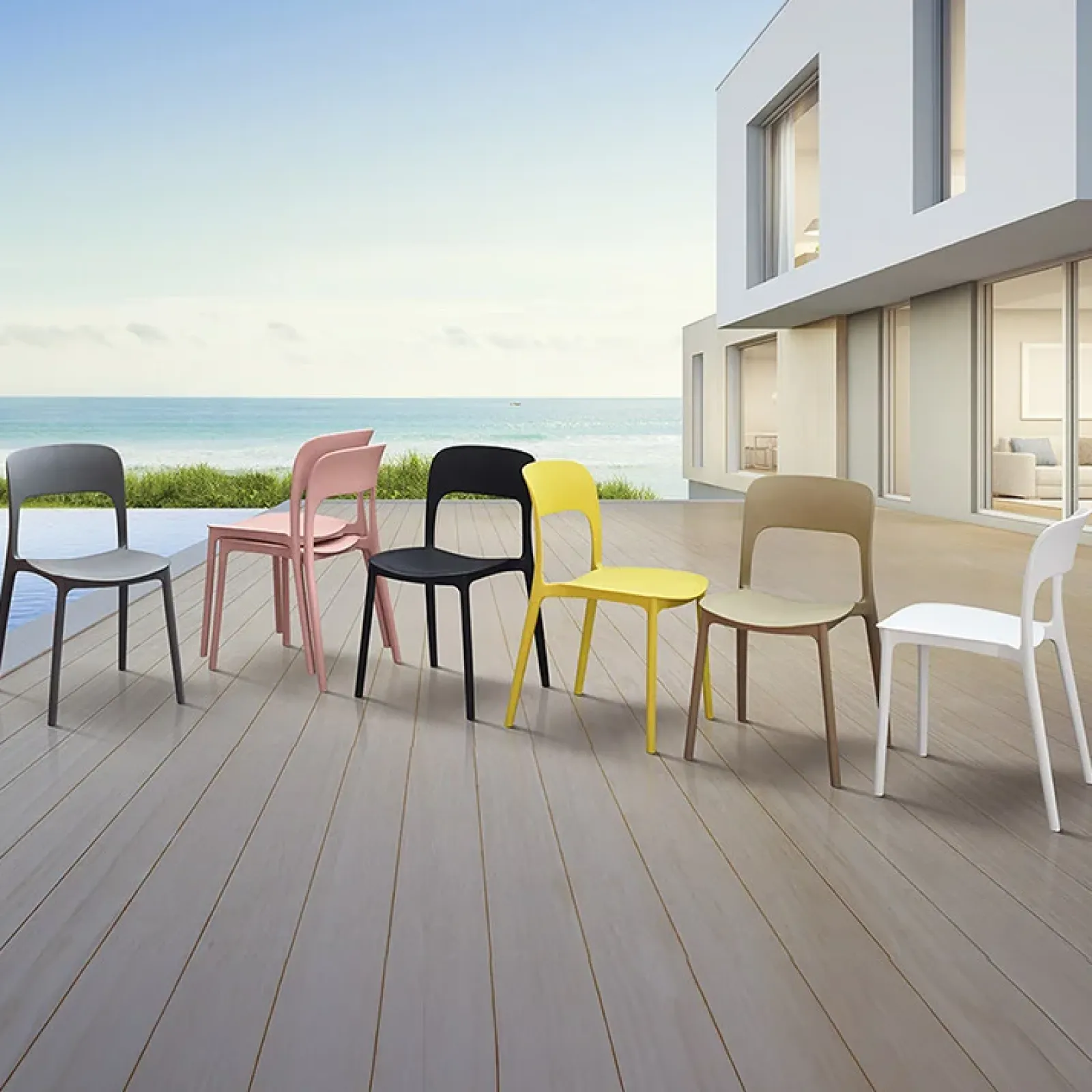 Nonostante la sua struttura leggera, Halyard è estremamente robusta e resistente, pronta a sostenere ogni momento conviviale con solidità e comfort. La sua natura impilabile la rende un vero alleato per ottimizzare lo spazio, ideale sia per abitazioni contemporanee che per ambienti contract.