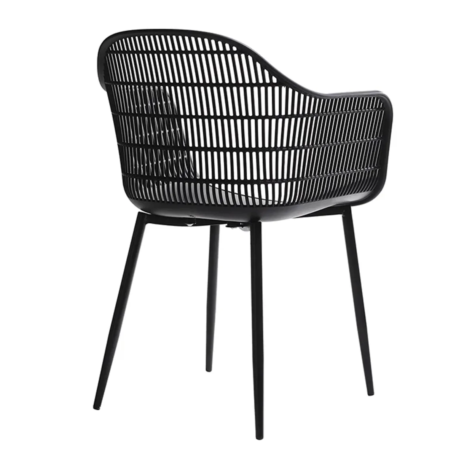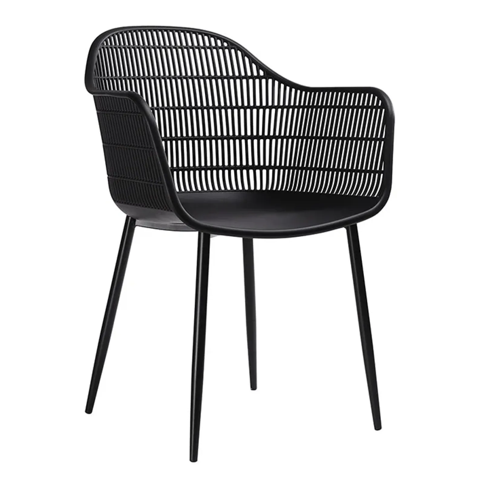 La seduta della sedia da pranzo Granada è realizzata in polipropilene, la base è in metallo. Il design nero opaco della sedia la rendono moderna e raffinata. La sedia è composta da un’ampia seduta con braccioli per un comfort adeguato. Lo schienale presenta un motivo a rete, perfetta per ogni tipo di ambiente.