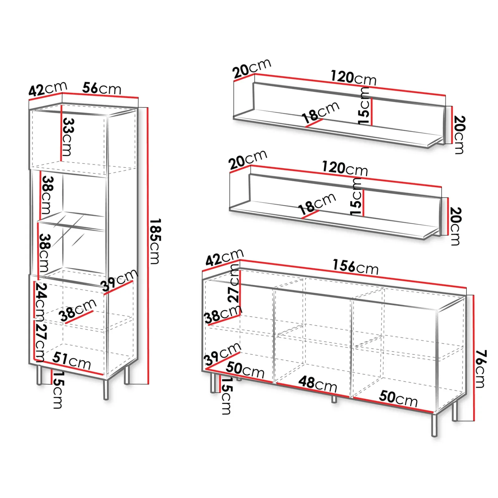 | Dimensioni | L.55,1 x H.185 x P.41,9 cm |