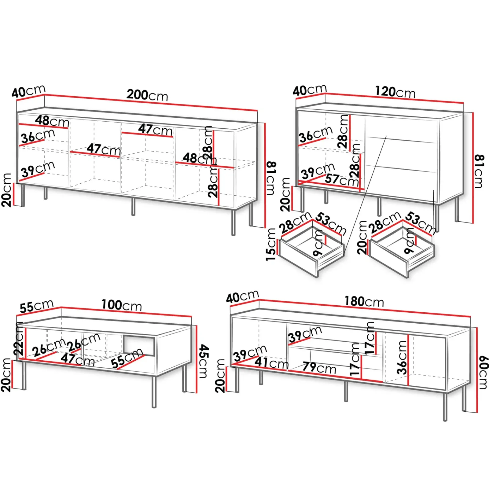 | Dimensioni | L.200 x H.81 x P.40 cm |