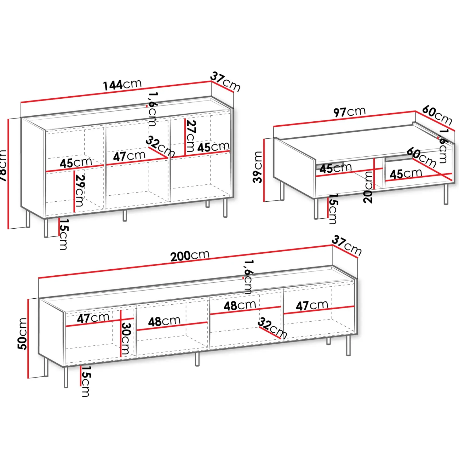 | Dimensioni | L.200 x H.50 x P.37 cm |