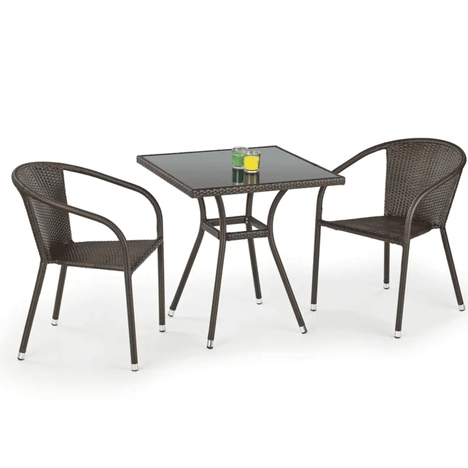 Garnero Arredamenti Set Tavolo E Sedie Da Giardino-Set tavolo in vetro 70x70cm + 2 sedie da giardino in rattan marrone Cubby