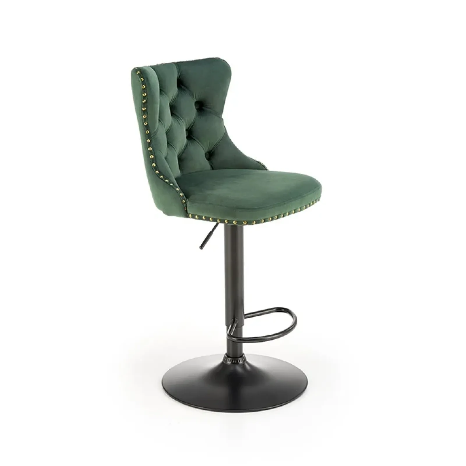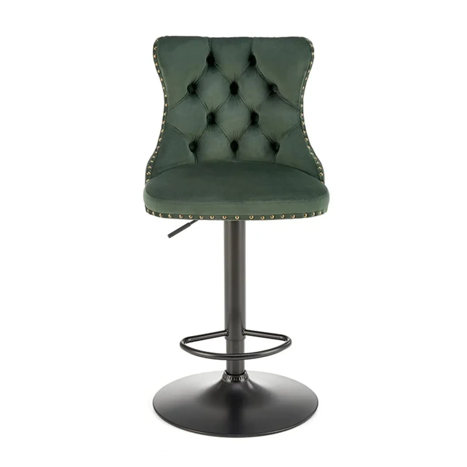 Sgabello alto regolabile in velluto verde scuro Himeko, il suo fascino glamour ti permetterà di trascorrere piacevoli serate in compagni degli amici.