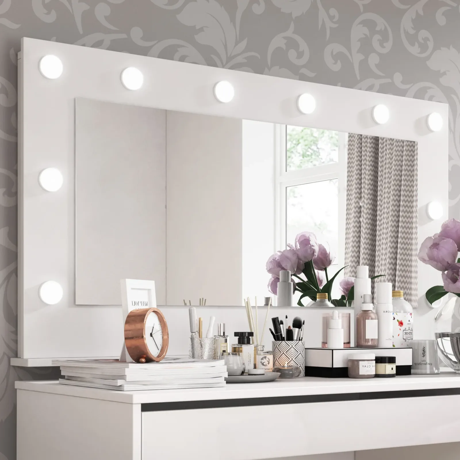 Lo specchio della scrivania Eliana è caratterizzato dallo design moderno e raffinato.