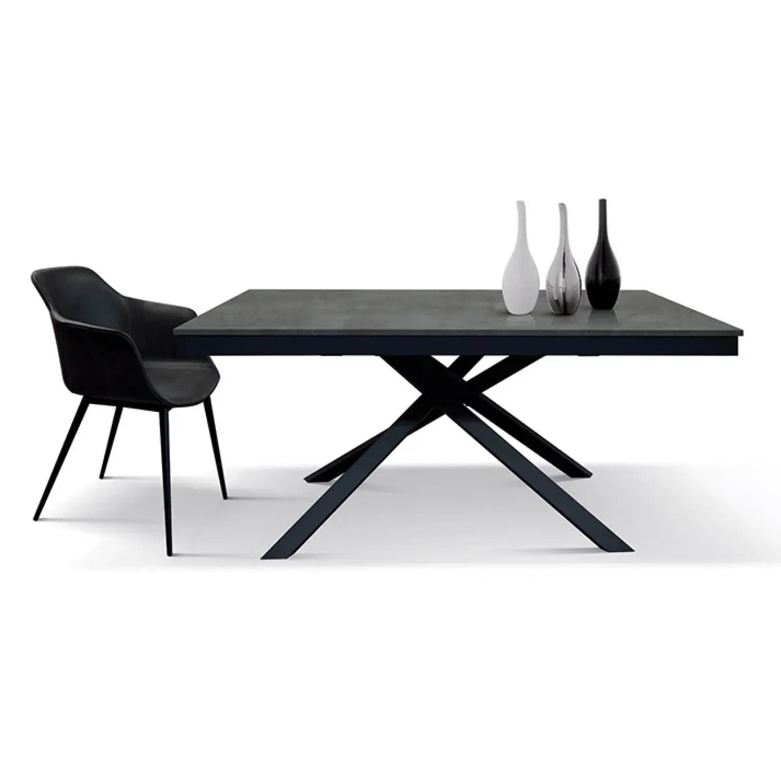 Garnero Arredamenti Tavoli Da Pranzo|Tavoli Allungabili-Tavolo allungabile 160/220 cm moderno acciaio ossido metallo Velvet Ossido – Nero opaco
