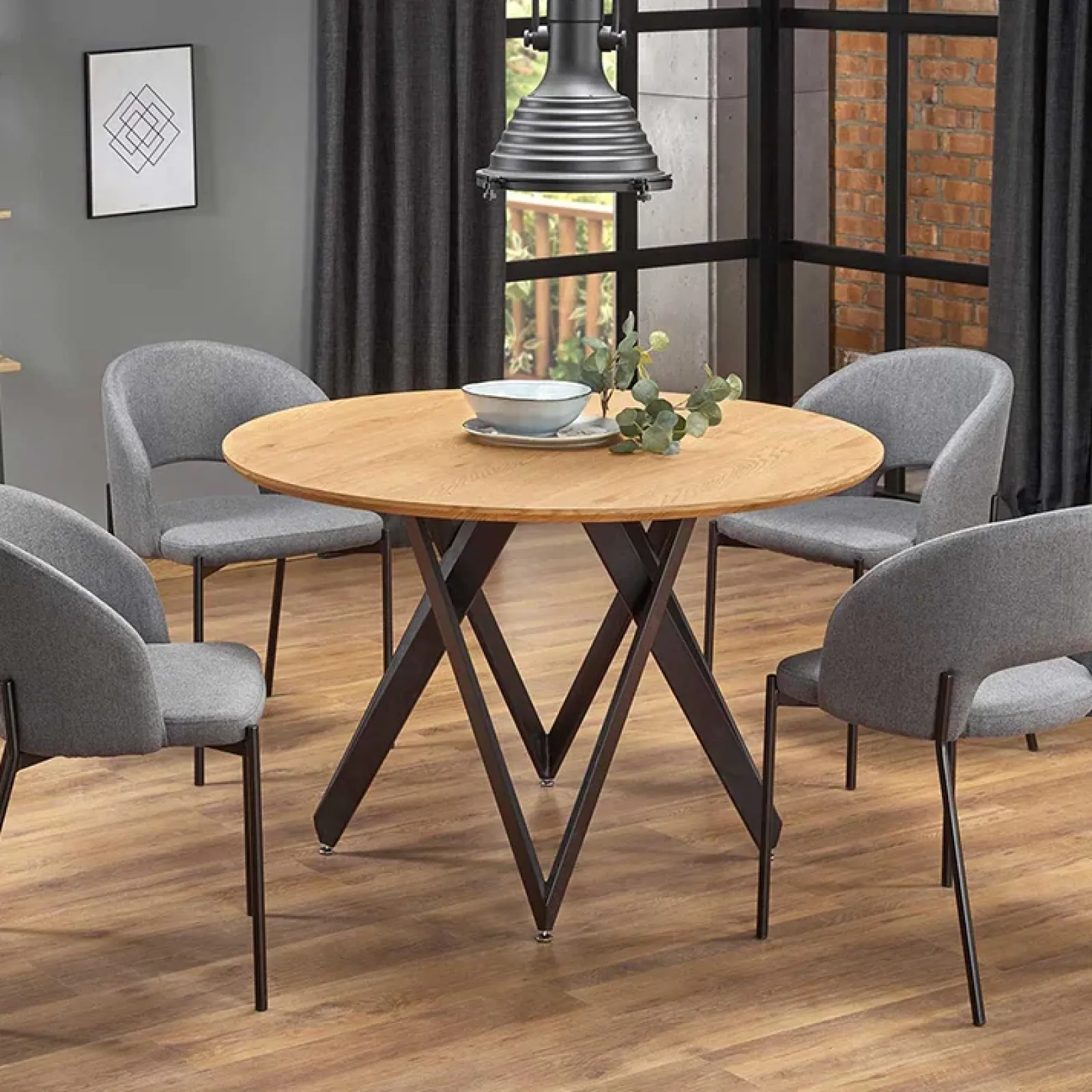 Tavolo rotondo Edessa 120 rovere miele acciaio nero moderno