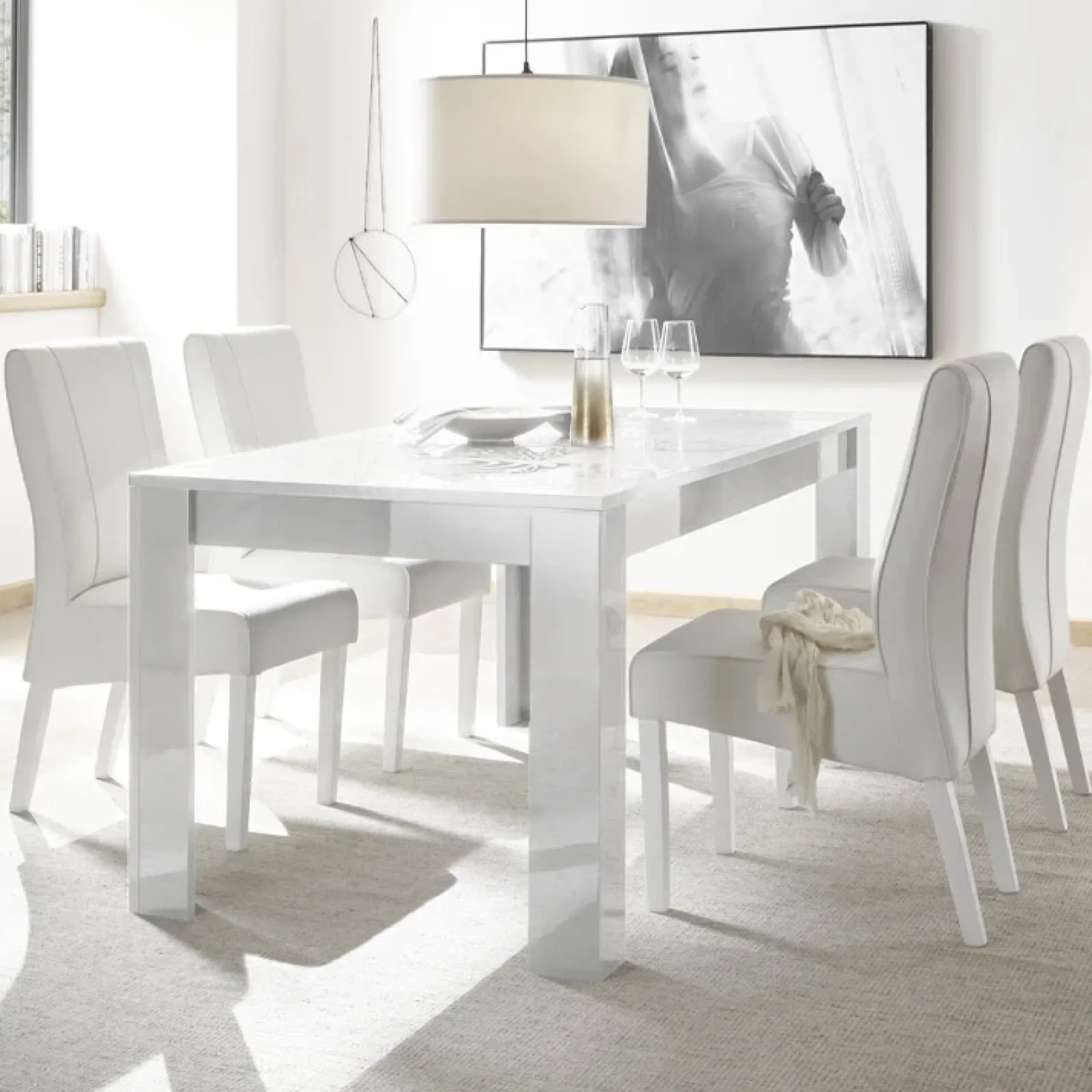 Garnero Arredamenti Tavoli In Legno|Tavoli Da Pranzo-Tavolo da pranzo rettangolare 180x90cm serigrafato Paradise Bianco Lucido